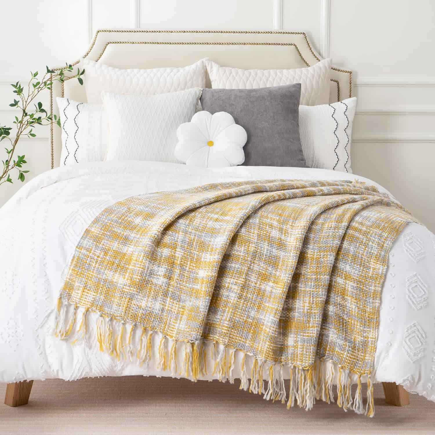 Manta Amarilla BATTILO HOME para Sofá Cama, Manta Mostaza