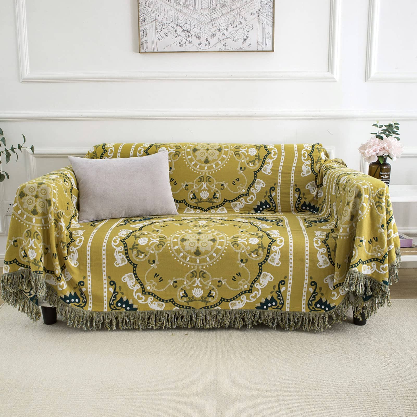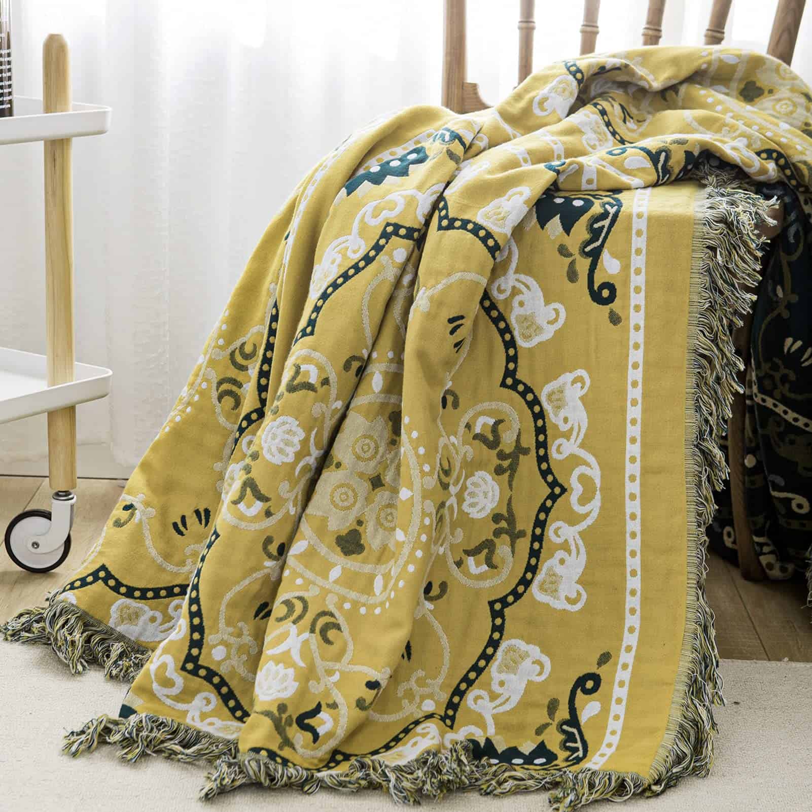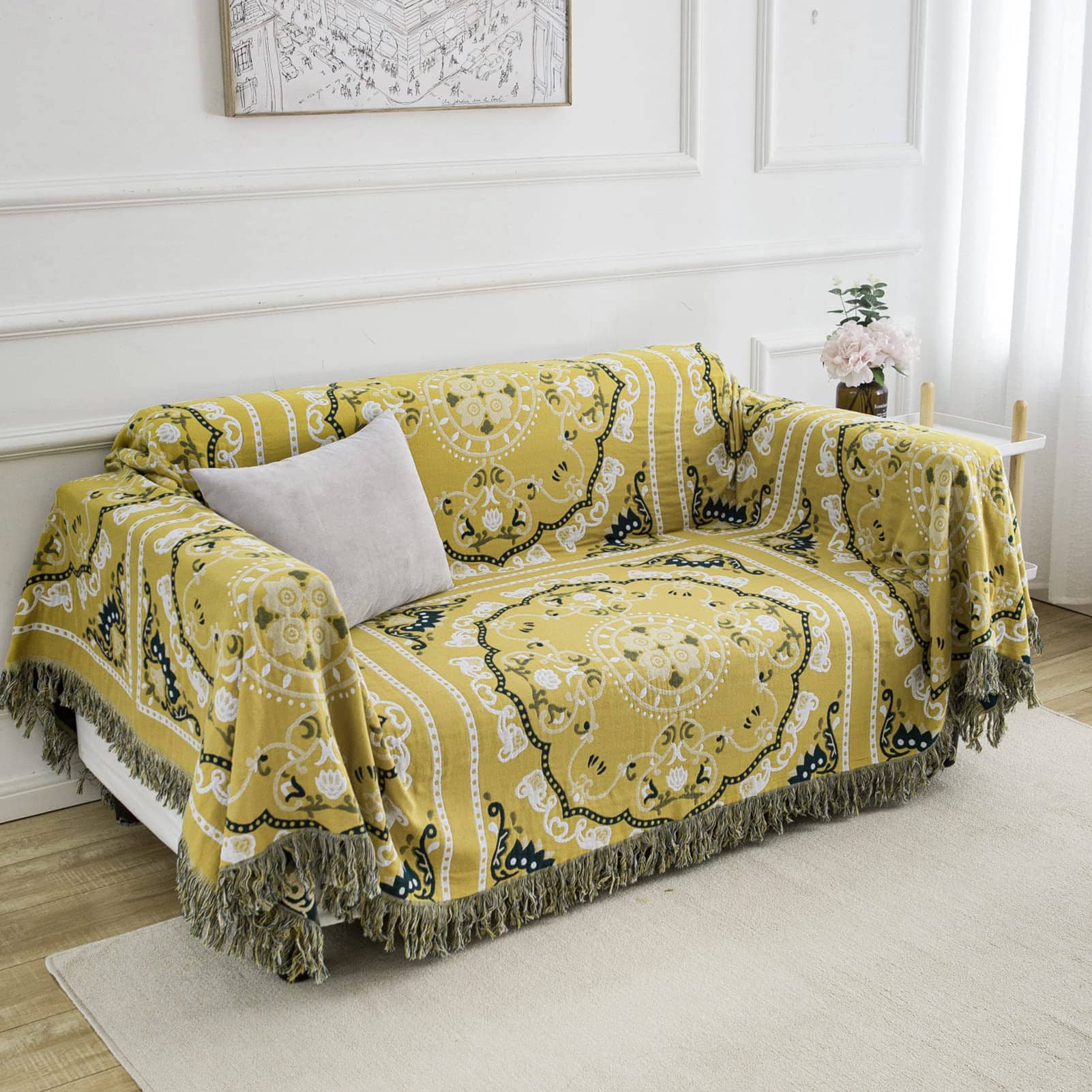 Manta Amarilla Boho Y-PLWOMEN para Sofá 90″x98″, 100%