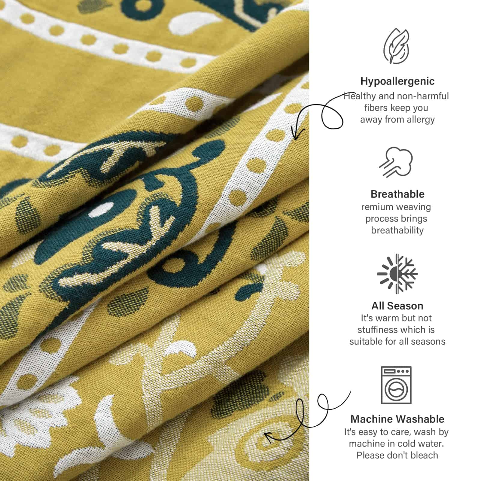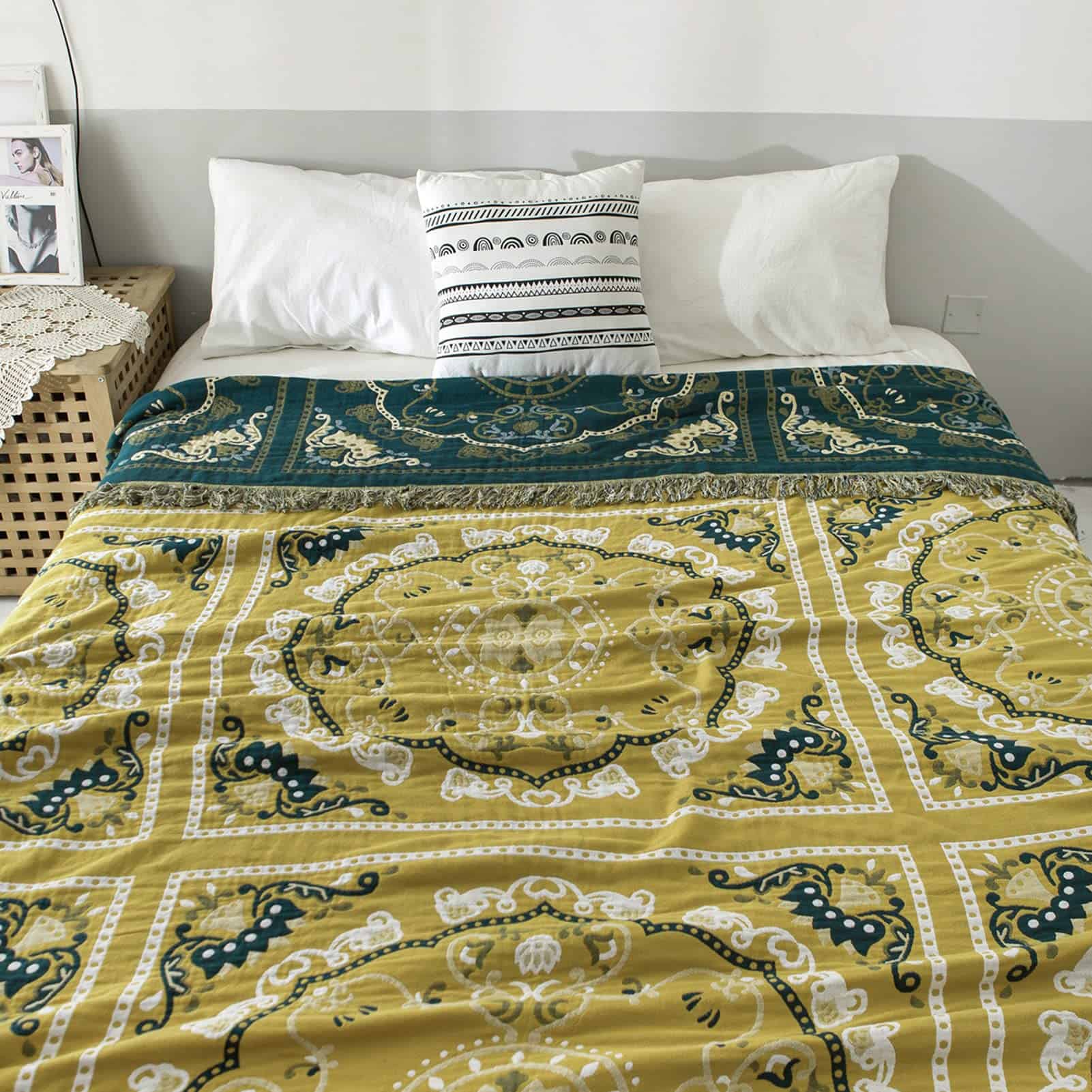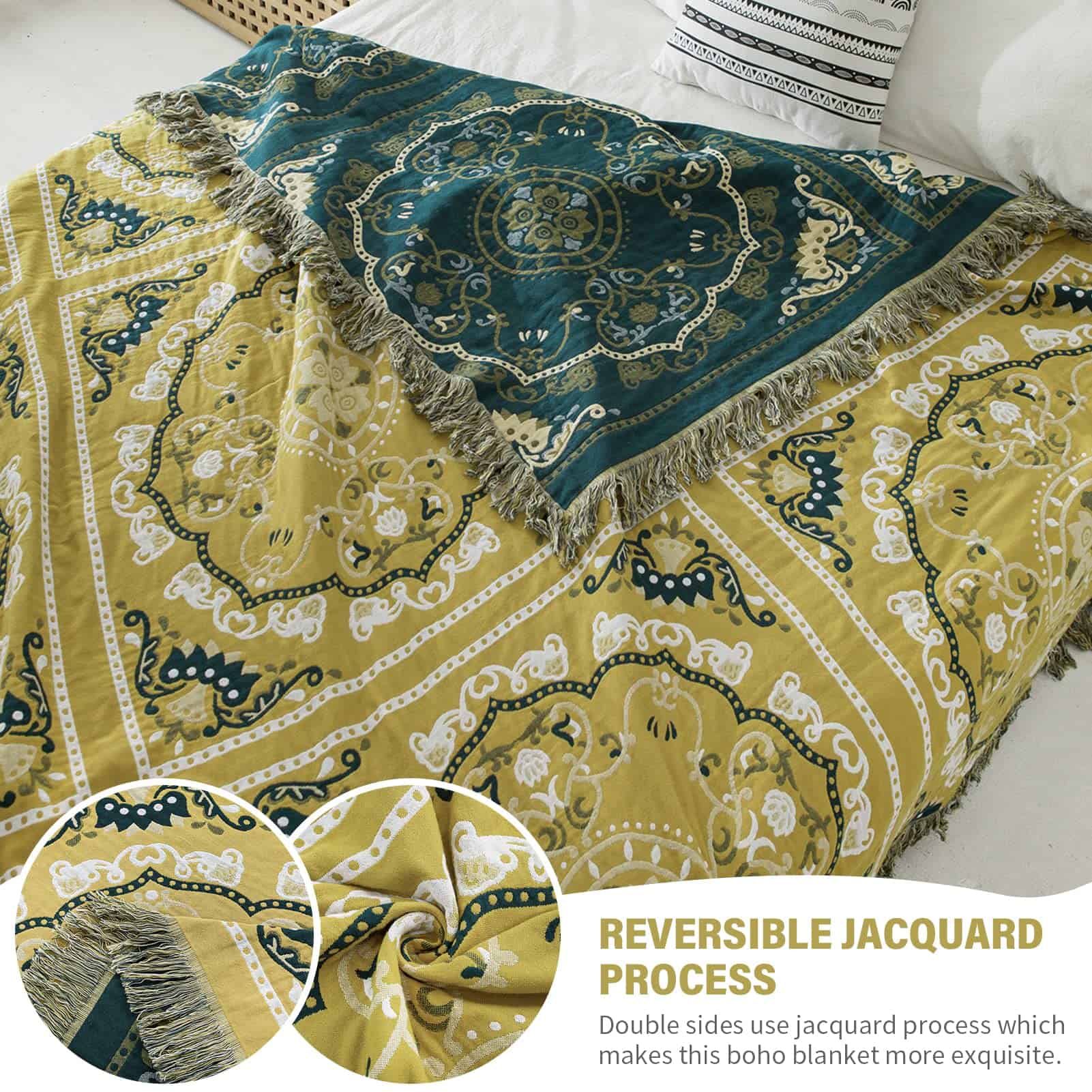 Manta Amarilla Boho Y-PLWOMEN para Sofá 90″x98″, 100%