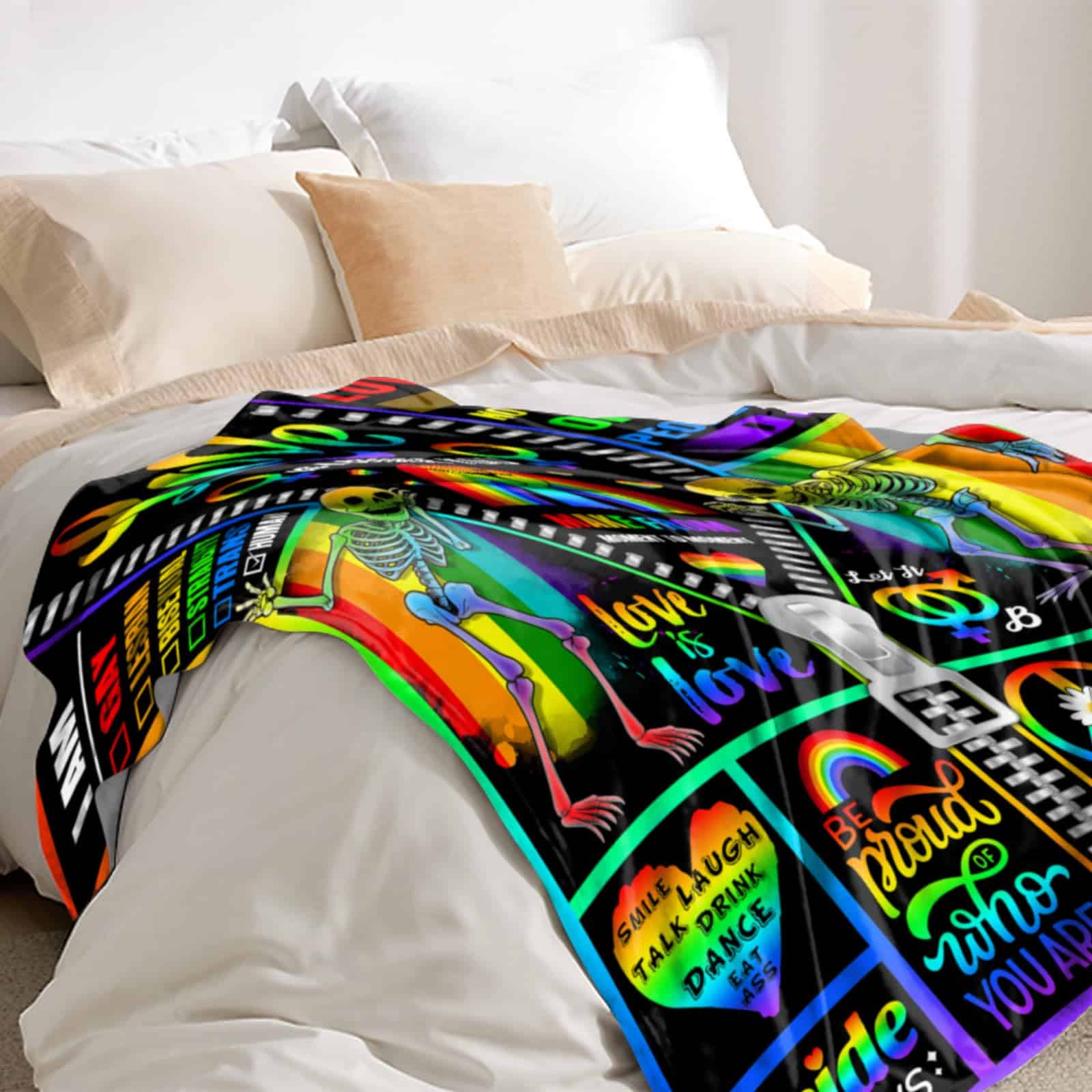 3. BUENOS REGALOS: Manta de orgullo del Día del Orgullo Si tienes amigos o familiares, esta manta linda y suave debe ser tu mejor opción para regalos. Es un gran regalo para novios, novias o familiares y amigos de todas las edades: cumpleaños, Día de San Valentín, Día de la Madre, Día del Padre, Halloween, Acción de Gracias y Navidad.
