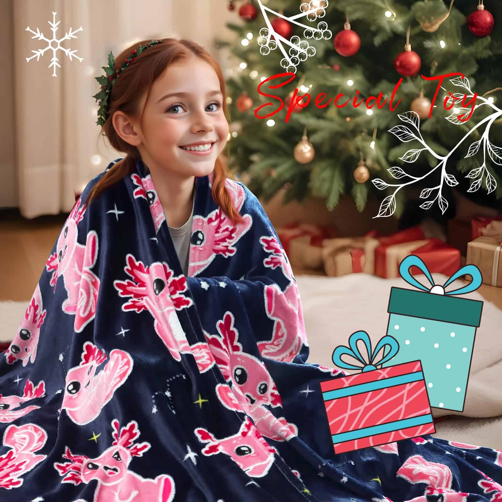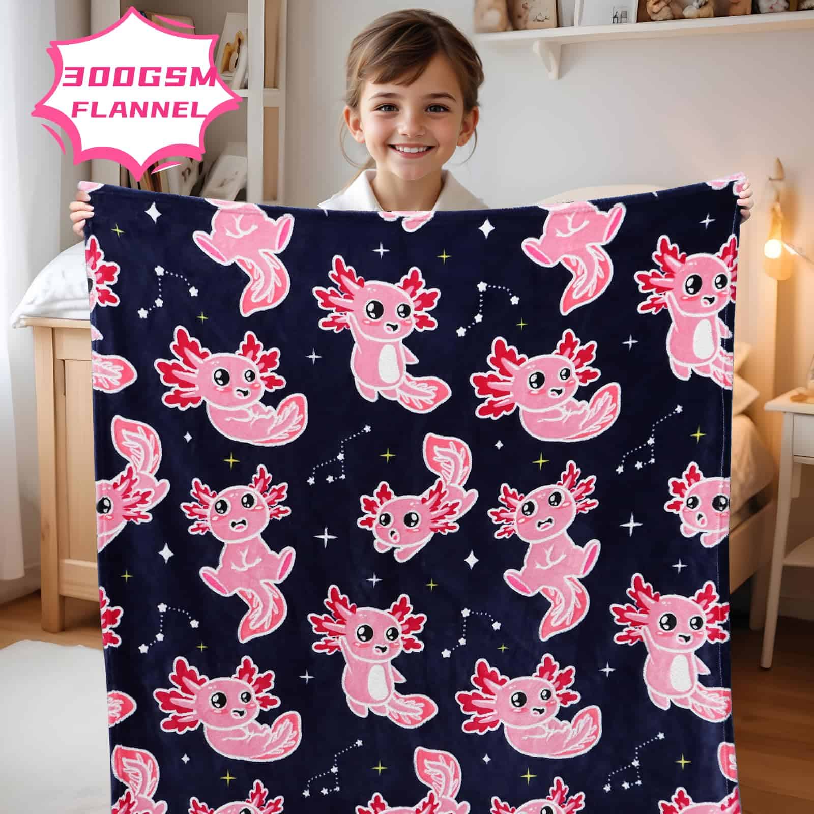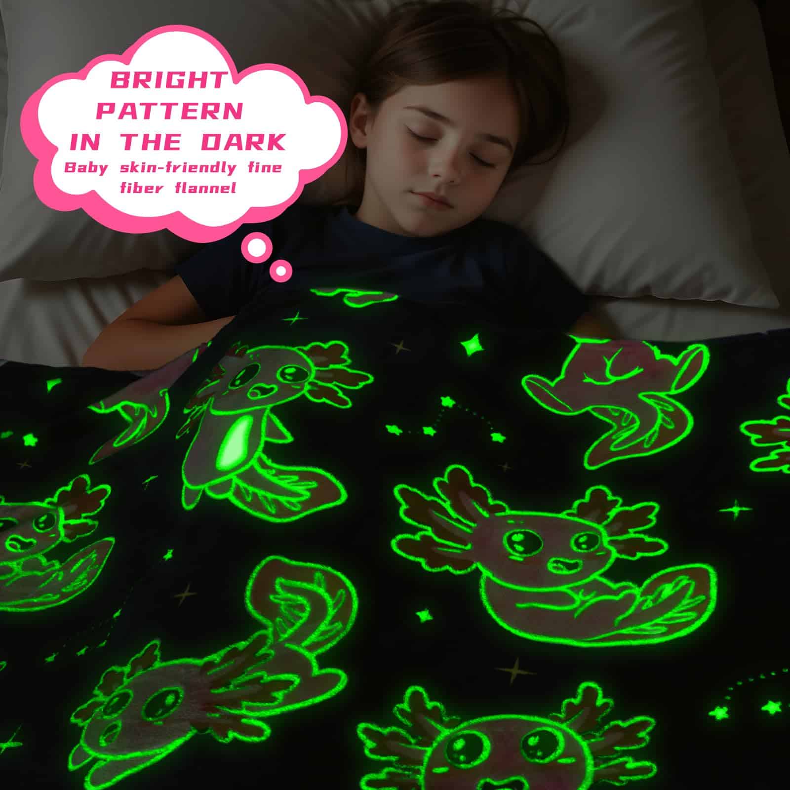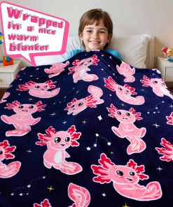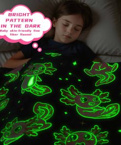 La manta que brilla en la oscuridad de axolote es hecha de tela de alta calidad que la hace acogedora y duradera. Deje que la manta de axolote le ayude a relajarse, coloque todo su cuerpo en las suaves mantas de axolote y disfrute de su calor. También es una manta de regalo perfecta para niños y niñas de todas las edades. Lavable a máquina para un fácil cuidado.