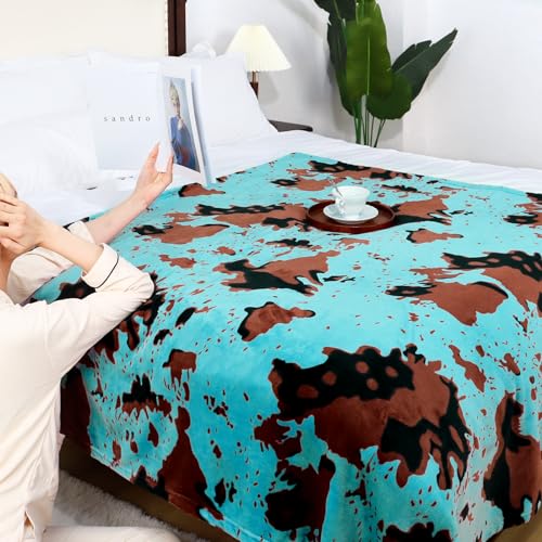 1. MANTA CON ESTAMPADO DE VACA AZUL- Nuestras mantas y cobijas de vaca están hechas de tela de franela polar que es suave al tacto. Esta felpa de doble cara hace que las mantas suaves y cobijas sean más difusas. Nuestra manta de franela azul es adecuada para todas las estaciones. Es una manta ligera para verano y una manta cálida para invierno. También puedes mantenerte cómodo en primavera y otoño. La manta azul peluda está cosida más fuerte y no tiene problemas de pelusas, decoloración ni arrugas.