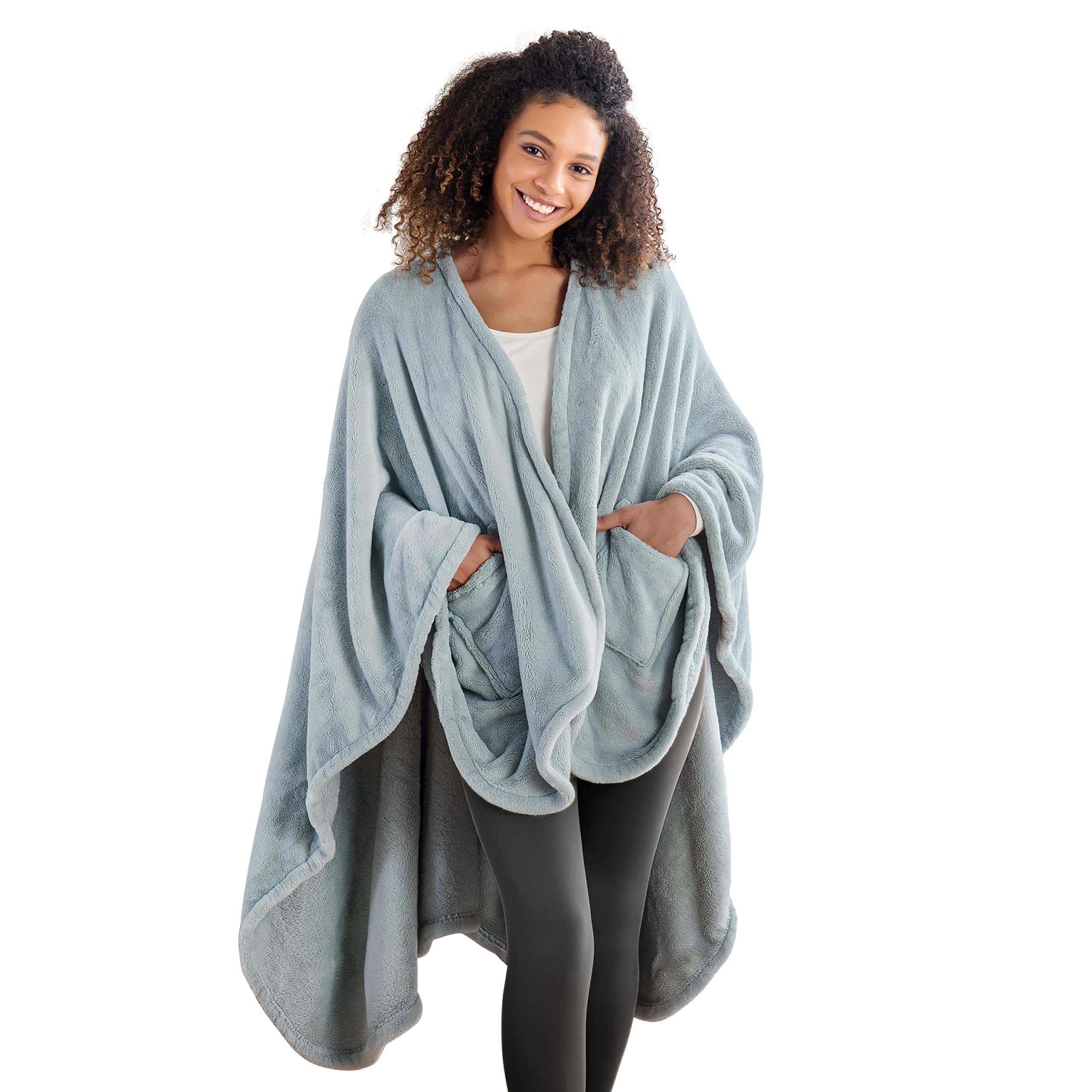 1. Manta Envoltura: ¿Por qué quedarse atascado en el sofá cuando puedes mantenerte acogedor en movimiento? Esta manta envolvente está diseñada para colgarse sobre tus hombros para que te sientas relajado y cálido sin importar a dónde vayas.