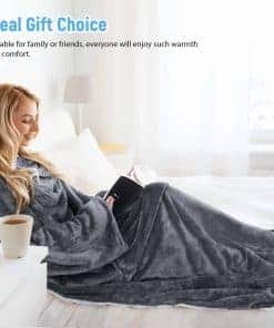 Esta manta abrazable tiene un tamaño de 70″ de largo y 52″ de ancho, lo que la hace adecuada para la mayoría de las personas. Es unisex, por lo que es perfecta tanto para hombres como para mujeres.