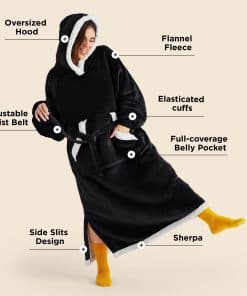 2. Calor corporal completo: Un diseño extra largo brinda calidez acogedora y transpirable de pies a cabeza durante los meses de invierno. Esta manta con capucha wearable cuenta con una conveniente abertura lateral para mayor maniobrabilidad cuando sea necesario.
