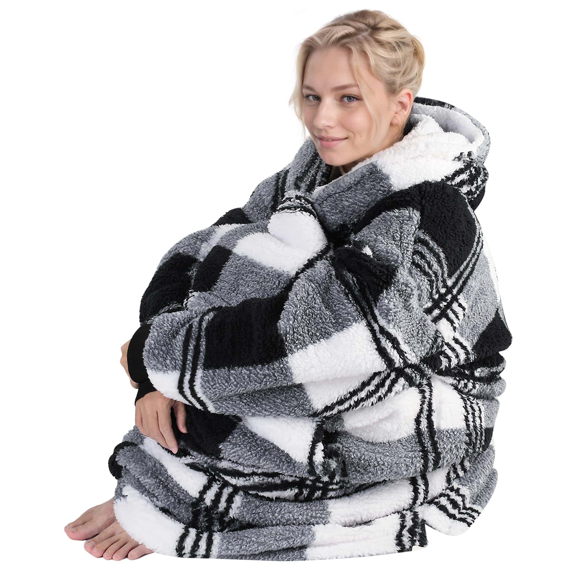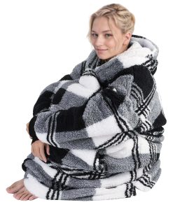 Manta con Capucha Catalonia Buffalo Plaid Negra de Gran