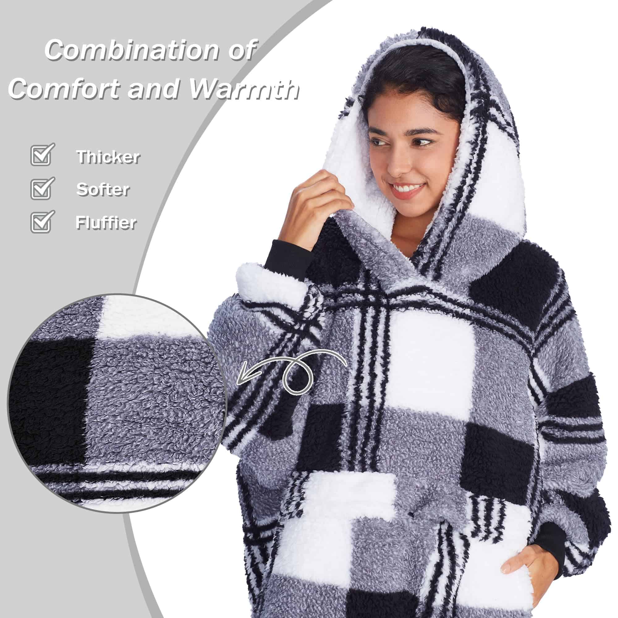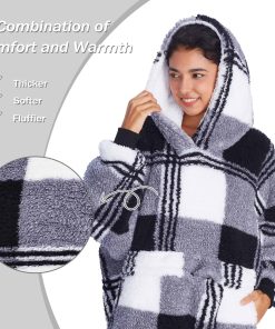 Manta cómoda, cálida y súper suave con capucha grande y forro de forro polar. Mantente abrigado y cómodo de la cabeza a los pies en el clima frío. Llévalo a donde necesites, camping, playa, concierto, evento deportivo o simplemente abrázate con él en el sofá. Capucha espaciosa para adultos y niños. Es un gran regalo para Navidad, Día de Acción de Gracias, cumpleaños, Día de la Madre, Día del Padre.