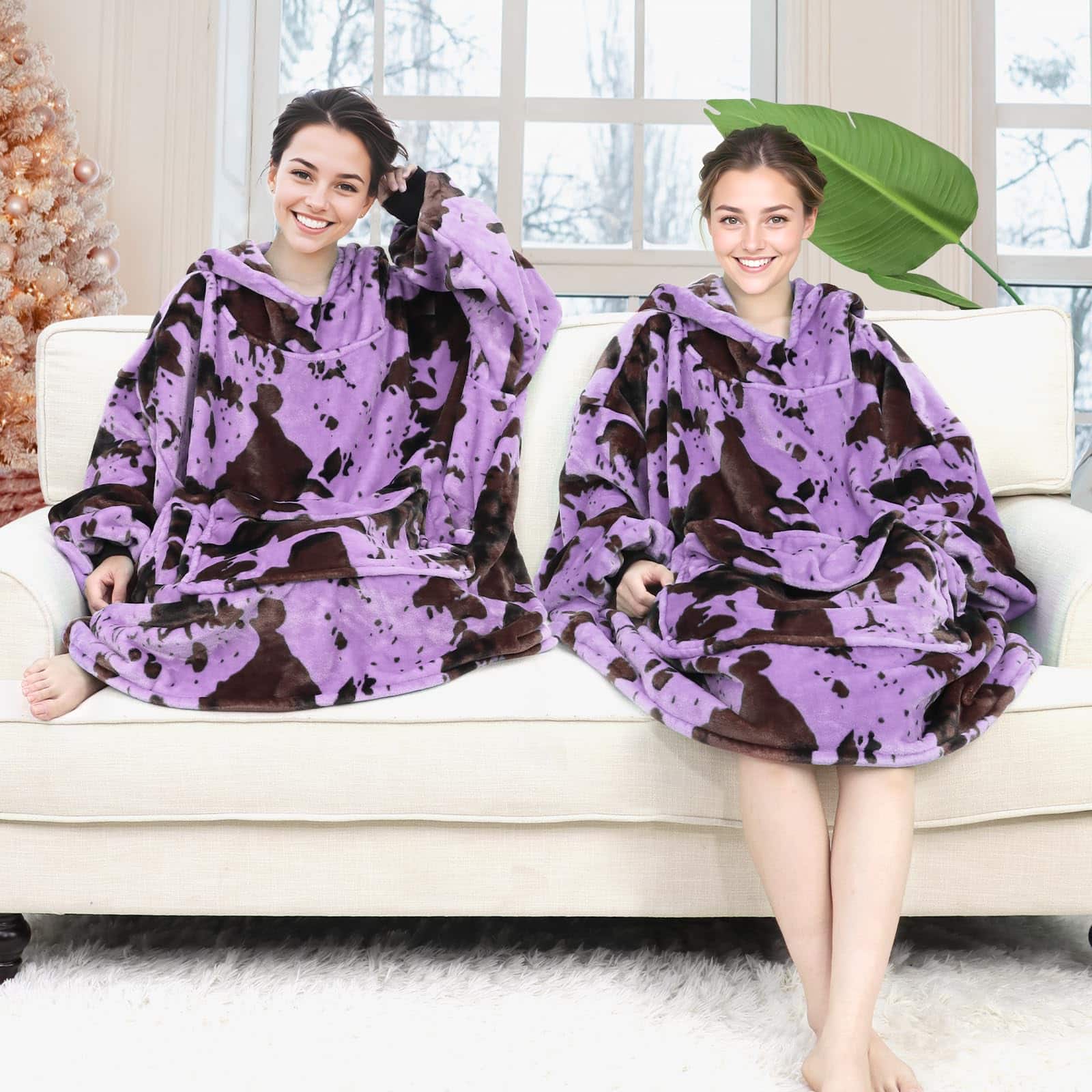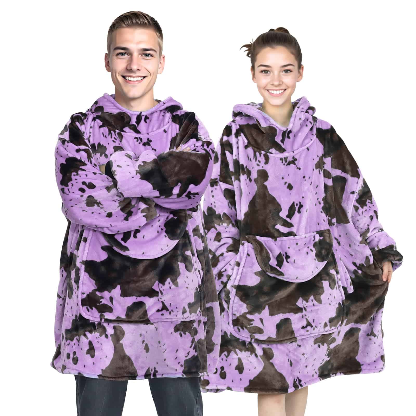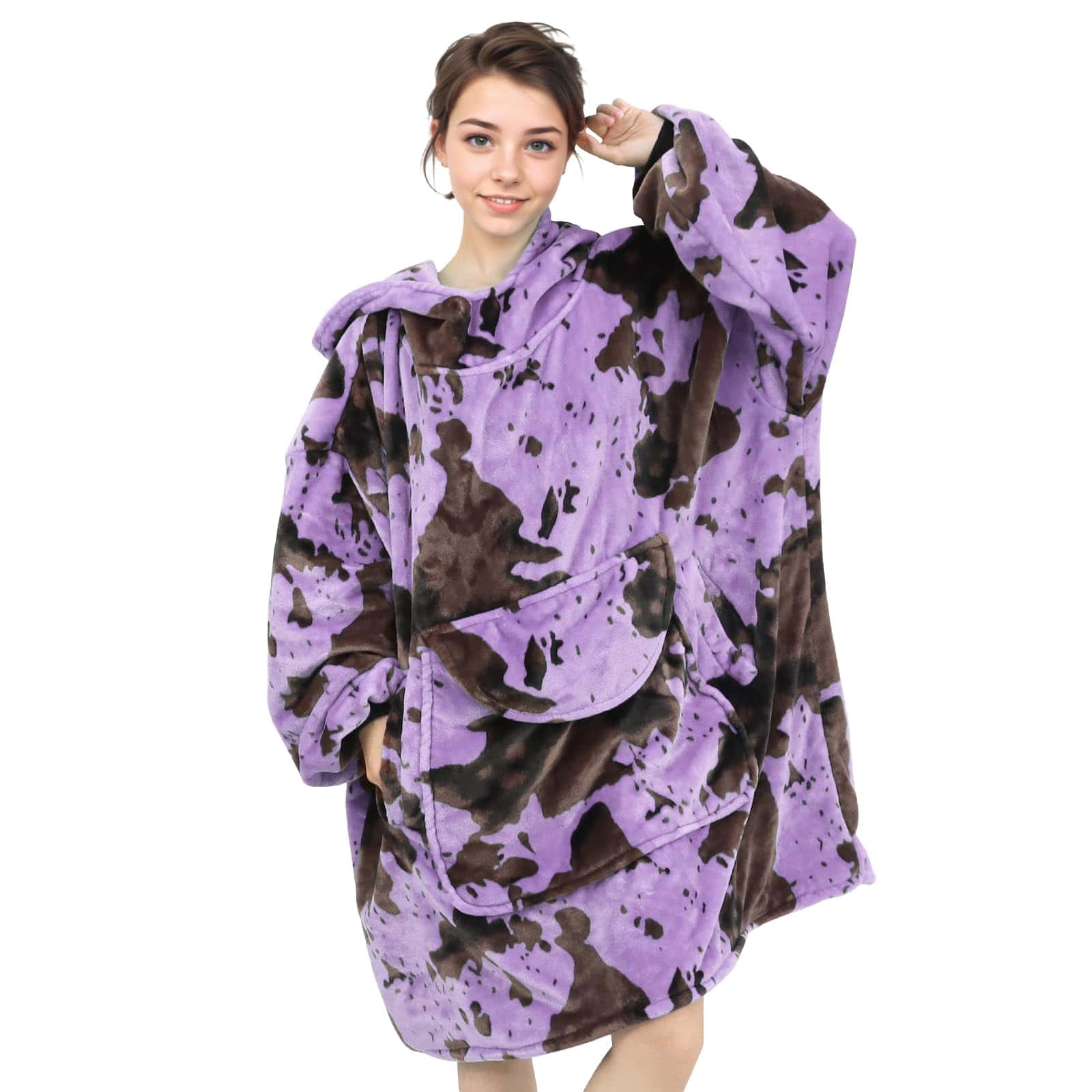 5. VARIEDAD DE COLORES: Nuestras mantas con capucha para adultos son adecuadas tanto para niños, mujeres y hombres. Hay varios colores con estampados de vaca para elegir. Incluyen negro y blanco, rosa, morado, azul verdoso, etc. La manta con capucha no solo es funcional, sino también un accesorio de moda para mantenerte caliente. Puedes elegir el estilo que coincida con tu personalidad y la decoración de tu hogar.