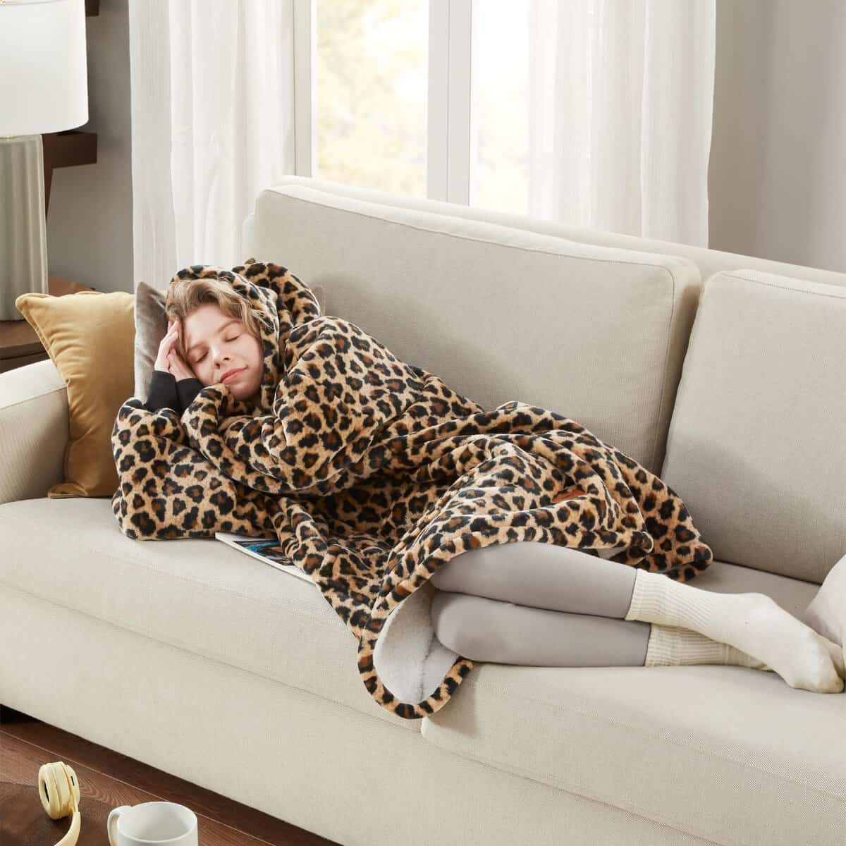 ¿POR QUÉ USAR UNA MANTA? TODO EL MUNDO se relaja en su casa con la misma ropa cómoda, ya sea pijamas o mantas cómodas y extragrandes. Ahora puedes usar convenientemente una suave manta grande con capucha de sherpa todos los días en tu casa o incluso afuera.