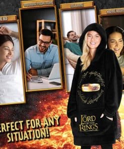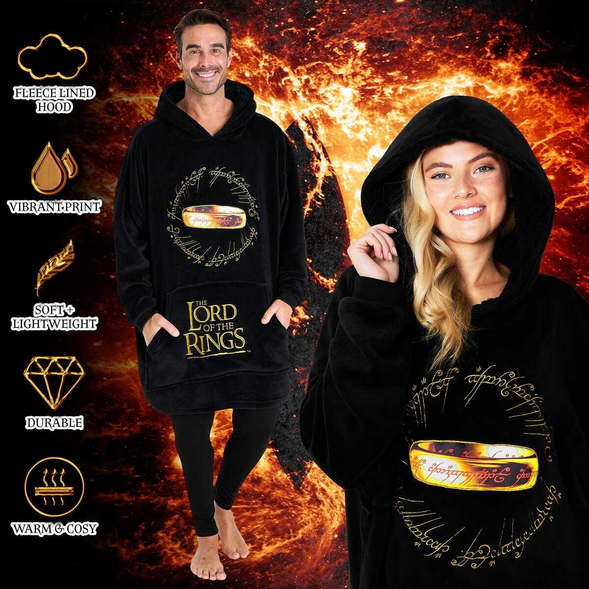 Compañeros Ringers, ¡regocijaos! ¡He aquí nuestra Manta con Capucha de El Señor de los Anillos! Con imágenes icónicas del Anillo y texto del Anillo Único, esta manta suéter es perfecta para las acogedoras noches de invierno y para relajarse en casa con total calidez. Noches acogedoras Acurrúcate en nuestra manta con capucha de El Señor de los Anillos, que ofrece tanto comodidad como calor. El suave tejido de fleece junto con sus mangas largas garantiza una experiencia acogedora, incluso en noches frías. Ajuste versátil Dirigido a fans adultos y adolescentes de los libros de El Señor de los Anillos, videojuegos y series de televisión, nuestra manta con capucha extragrande es la elección perfecta. Diseñado tanto para hombres como para mujeres, este abrigo con manta proporciona calor y comodidad durante las noches de cine, sesiones de lectura o simplemente relajándose. Coleccionable premium de Ringer Añade un toque de practicidad y singularidad a tu colección de El Señor de los Anillos con nuestra manta con capucha extragrande premium. Este artículo imprescindible combina perfectamente la funcionalidad con un toque distintivo, convirtiéndolo en una adición excepcional a tu creciente colección. Mercancía y regalo definitivo de El Señor de los Anillos ¡Sorprende a tus seres queridos que son súper fans de El Señor de los Anillos con nuestra manta con capucha de fleece extragrande! Es un regalo ideal para cumpleaños, fiestas, Día de la Madre, Día del Padre o cualquier otra ocasión especial. ¡Lleva tu amor por El Señor de los Anillos con total comodidad con nuestra manta poncho!