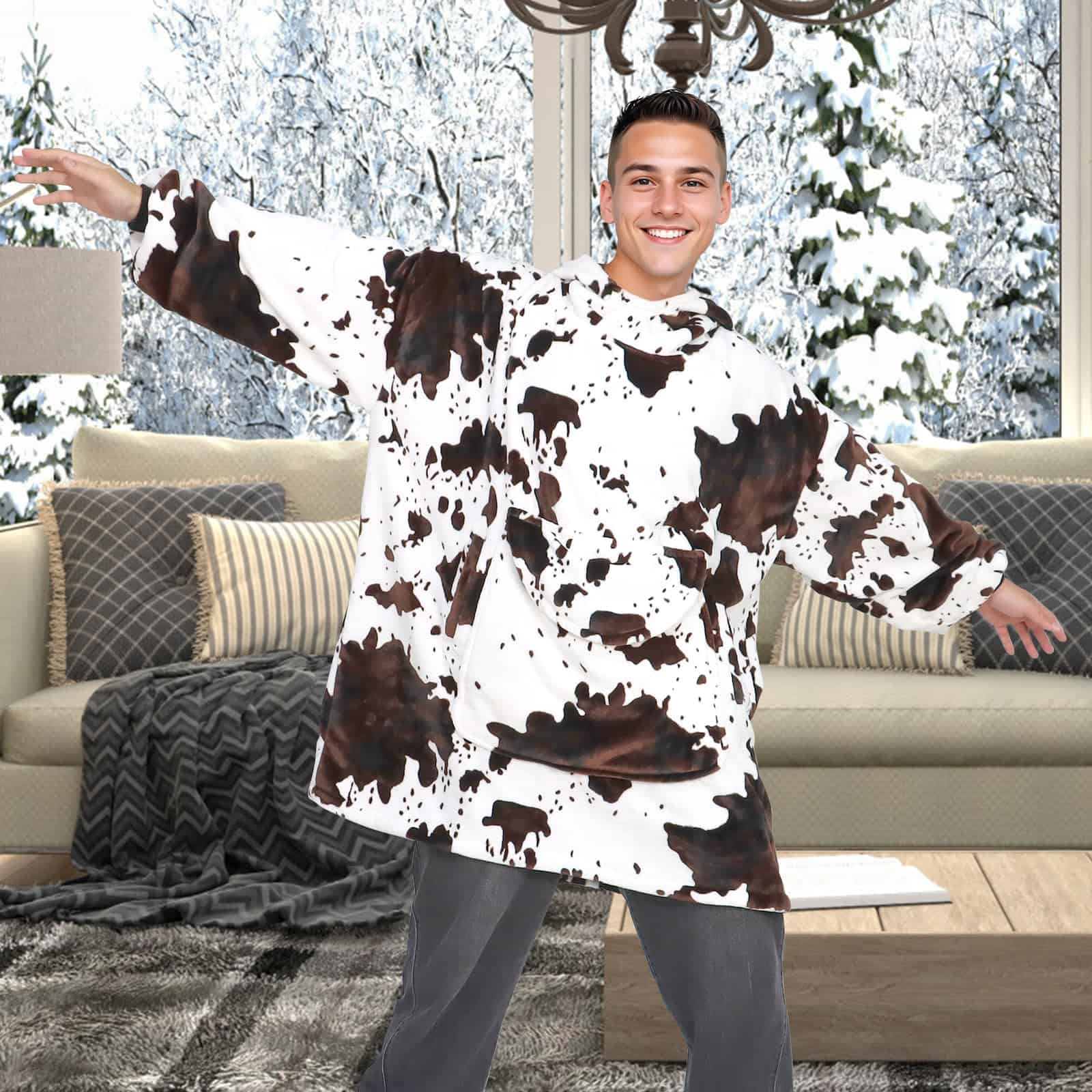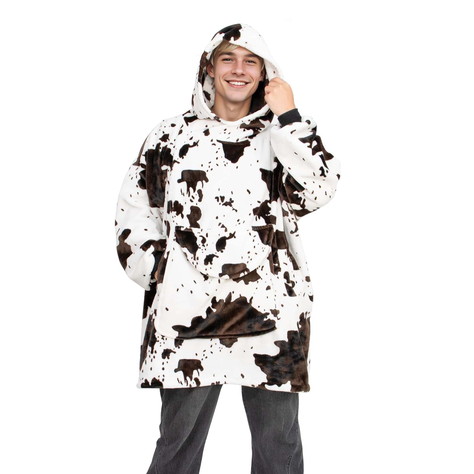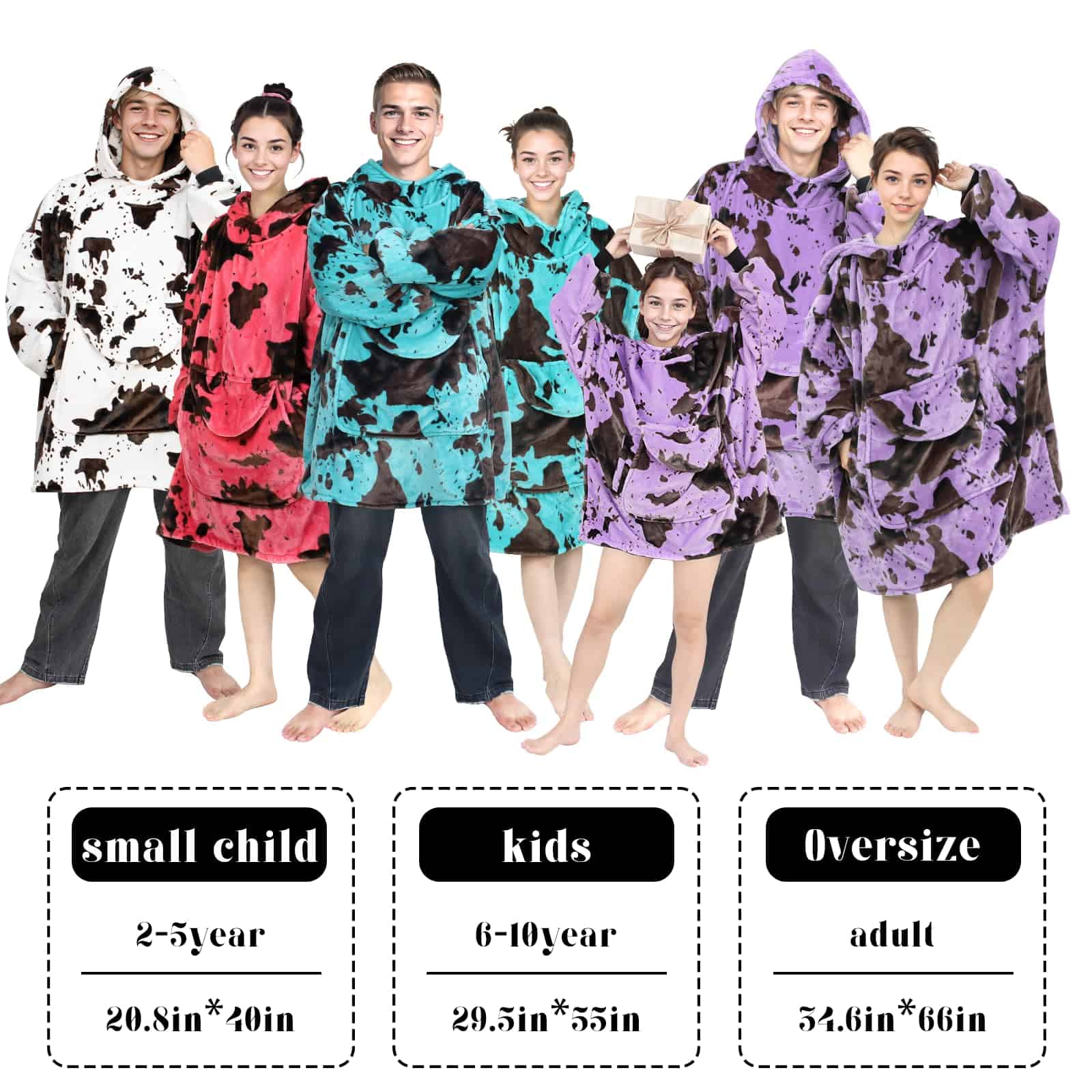 5. VARIEDAD DE COLORES: Nuestras mantas con capucha para adultos son adecuadas tanto para niños como para mujeres y hombres. Hay varios colores con estampados de vaca para elegir. Incluye negro y blanco, rosa, morado, azul turquesa, etc. La manta con capucha wearable no solo es funcional sino también un accesorio de moda para mantenerte caliente. Puedes elegir el estilo que vaya con tu personalidad y la decoración de tu hogar.