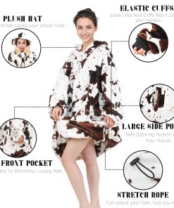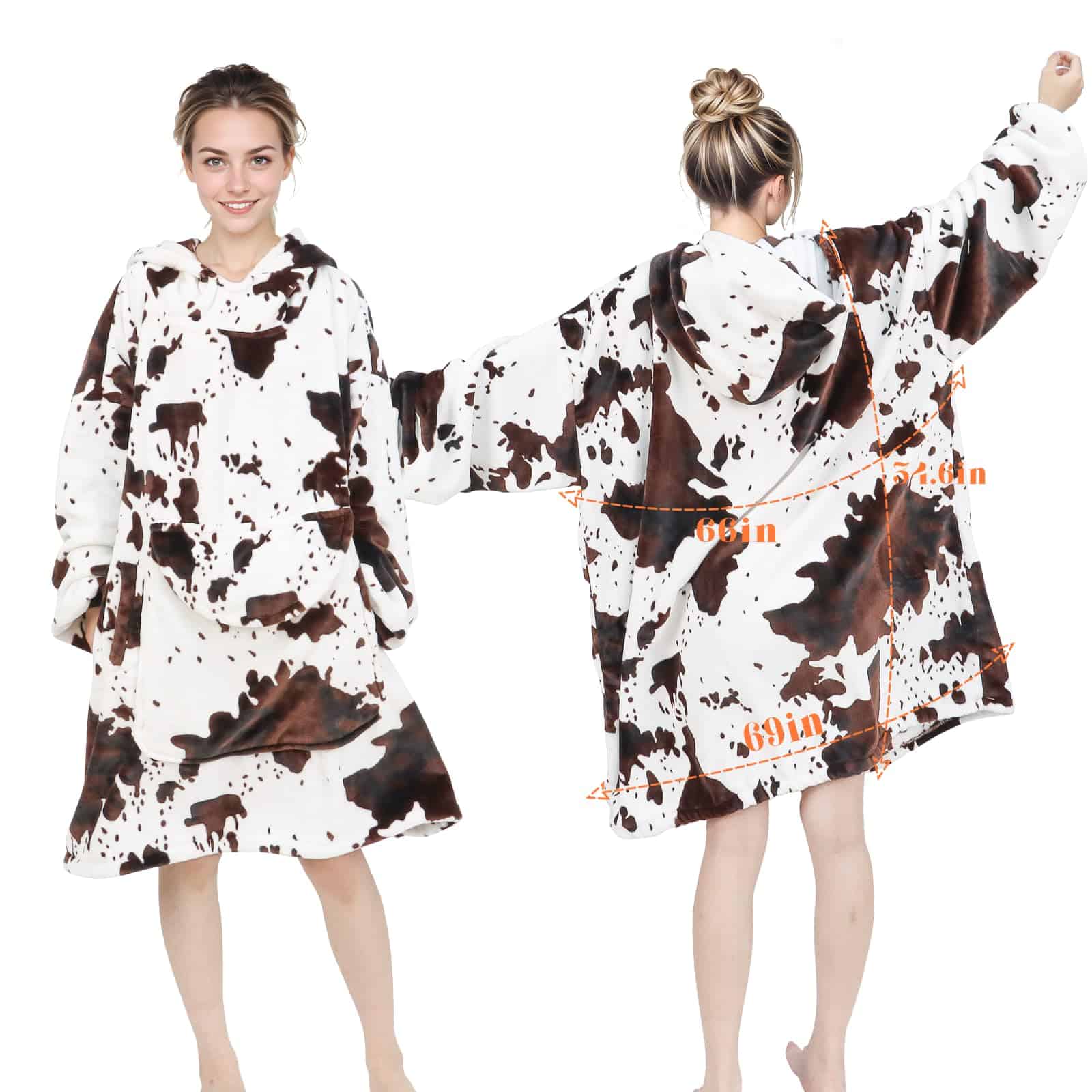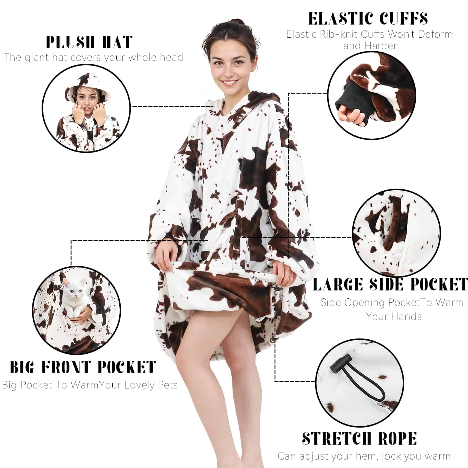 1. MATERIAL DE CONFORT: La manta con capucha de estampado de vaca está hecha de microfibra polar, una capa de telas acogedoras y suaves, te llena de calor y comodidad, no es demasiado pesada para ralentizar tus movimientos. La sudadera con capucha es un regalo único de cumpleaños, festivo, de mejor amiga o para cualquier ocasión para niños, niñas, mujeres y hombres.