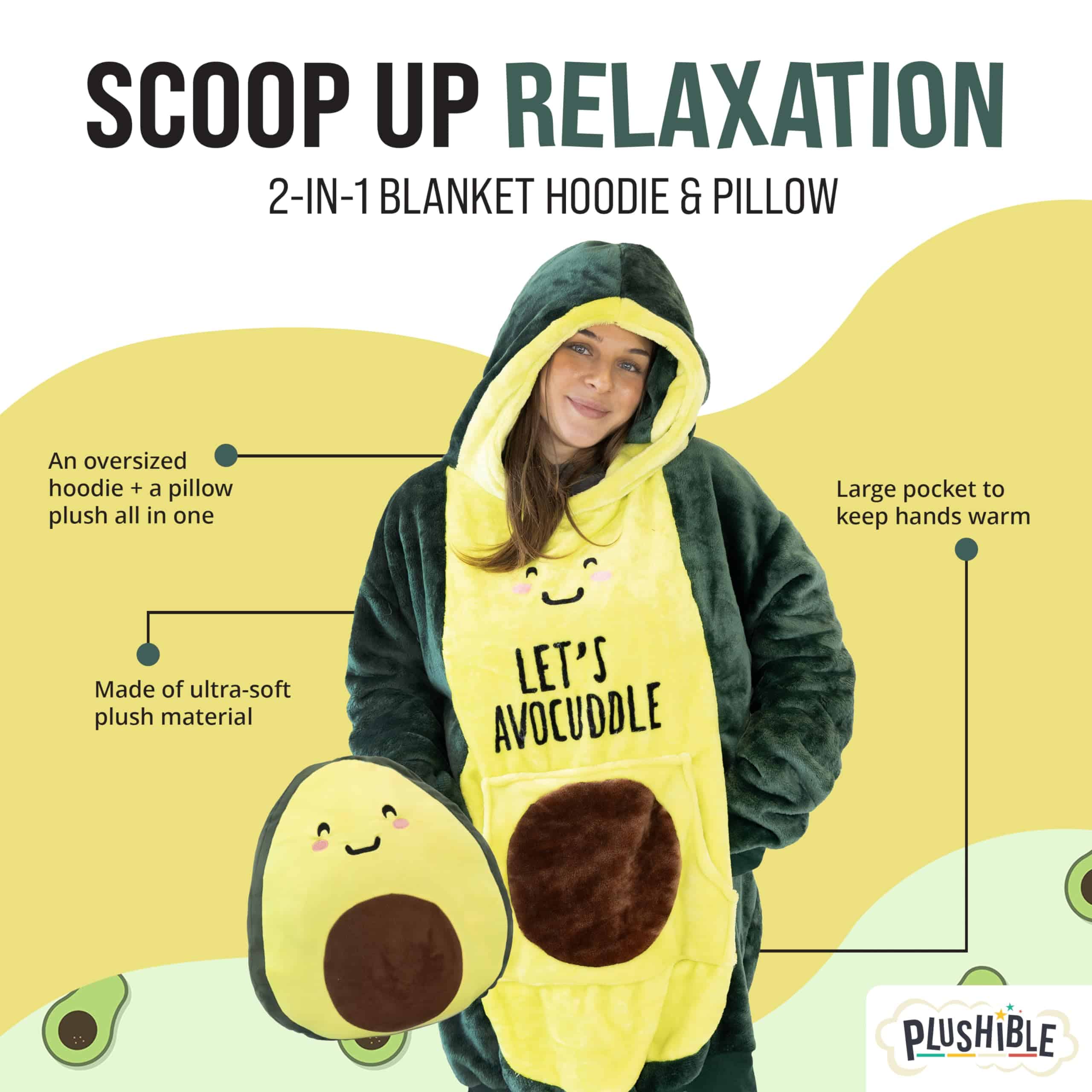 Manta con Capucha de Peluche Plushible, Aguacate, 2 en 1