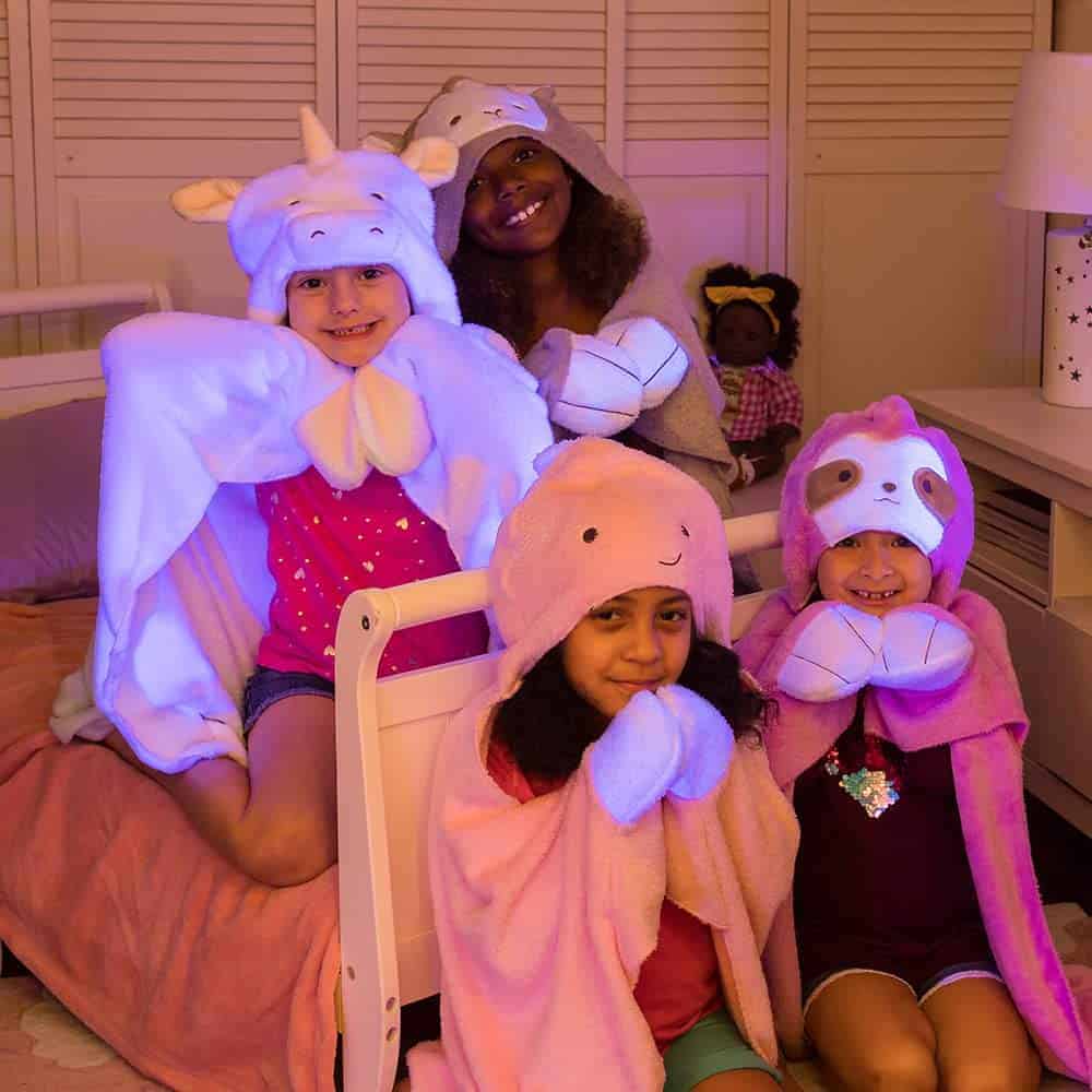 El miedo a la oscuridad es extremadamente común en los niños pequeños y a menudo puede causar noches de insomnio y dificultad para hacer la transición a sus grandes camas para niños. Aquí es donde la colección Snuggle and Glow de Adora de amigos abrazables puede ayudar. Ofreciendo un brillo cálido y tranquilizador, esta sudadera con capucha de perezoso Snuggle and Glow ayudará a que su hijo se sienta seguro y feliz toda la noche. Una gran alternativa a una luz nocturna para un brillo de confort y calma, la sudadera con capucha de perezoso Snuggle and Glow tiene una adorable cara que brilla en la oscuridad y patas de bolsillo para sus pequeñas manos. Activado por la luz del día, el perezoso se cargará con la luz del sol y estará listo para brillar a la hora de dormir.