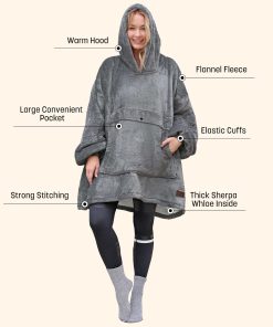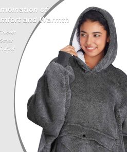 Nuestra manta sudadera es el regalo perfecto para cualquier ocasión especial. Hecho con materiales de alta calidad, nuestra sudadera con capucha te mantendrá caliente y cómodo en los días fríos. Con un diseño reversible, puedes elegir entre el lado de Sherpa mullido o el material de franela micro suave, ambos extremadamente suaves con una sensación agradable para todo tu cuerpo. El bolsillo frontal extra grande es práctico para mantener tus manos calientes y llevar tu teléfono celular, control remoto de TV y otros objetos pequeños. Además, la talla única garantiza un ajuste cómodo y espacioso para hombres, mujeres y adolescentes. ¡Aprovecha nuestra manta sudadera para todas tus actividades, desde acampar hasta relajarte en casa, y disfruta del calor y la comodidad que ofrece!