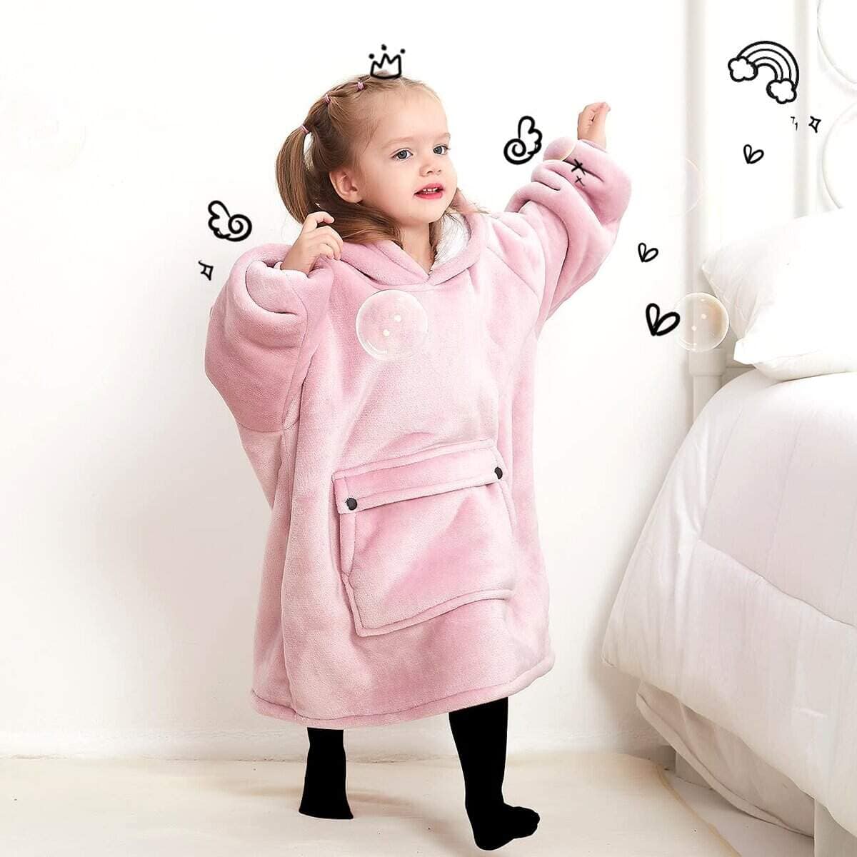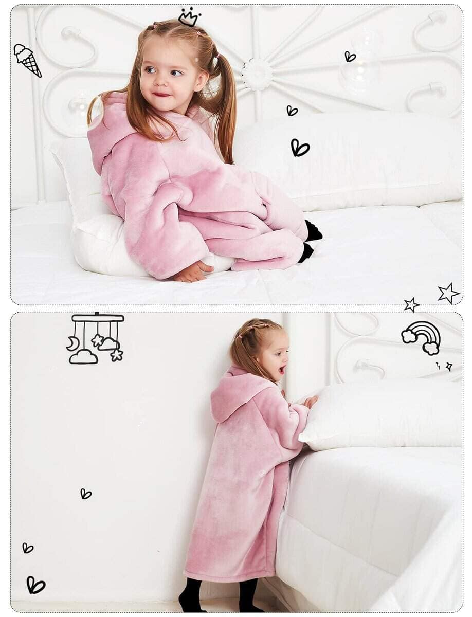 1. La sudadera con manta con capucha es un gran regalo para niños de 2 a 6 años de menos de 4 pies. Se puede usar en casa, cómoda y cálida, en largos viajes en automóvil a pijamadas, juegos de video, campamentos, ¡incluso para usar en la escuela! 2. La manta con capucha para niños combina la eficiencia del diseño de la sudadera, lo que resulta en sudaderas con mantas súper cómodas y muy cálidas. ¡Es como llevar un abrazo! Su sonrisa te dirá que pueden sentir la felicidad! 3. Facilidad de cuidado Esta manta para usar es completamente lavable a máquina y se puede secar en secadora a baja temperatura, lo que se suma a su diseño de fácil mantenimiento. ¡Eso significa que tu manta olerá divinamente y se verá como nueva cuando quieras! 4. Capucha grande y bolsillos profundos: La capucha grande de la manta para usar mantiene la cabeza y el cuello calientes y sirve como almohada para acostarse. Los bolsillos profundos mantienen seguros sus pertenencias. 5. Talla: Una talla para todos, la sudadera está disponible en una talla, que es adecuada para niños de 6 años y menores, niñas pequeñas. Ofrecen una sensación de seguridad y pueden simular la sensación de ser abrazados.