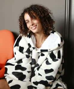 3. Nuestra manta con capucha reversible de gran tamaño es acogedora y suave al tacto. No importa por qué lado elijas usarla, el lado Sherpa o el material de microfelpa suave, ambas telas son extremadamente suaves con una sensación cálida y cómoda para todo tu cuerpo.