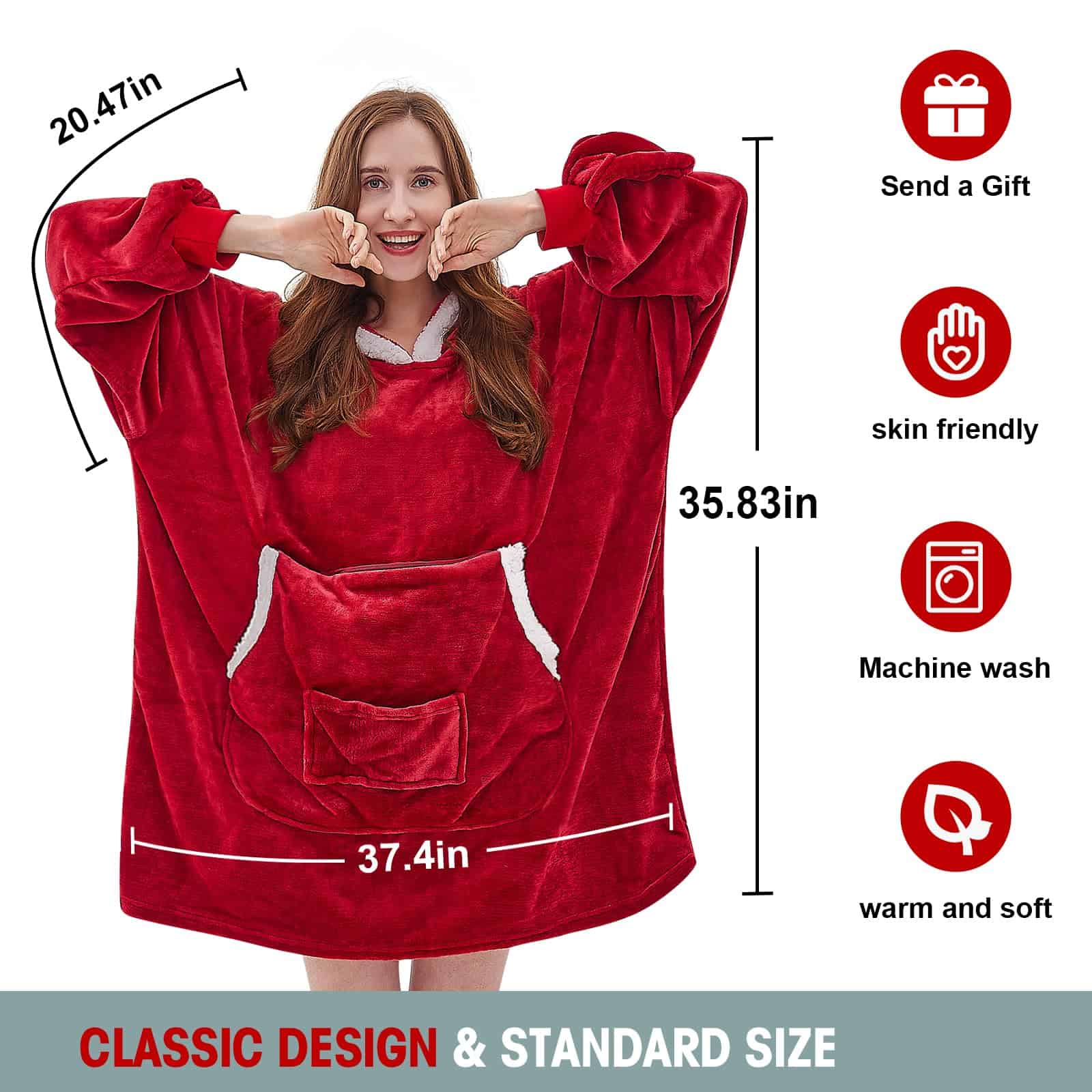 Manta con capucha Gigante de Franela y Sherpa, Regalos de