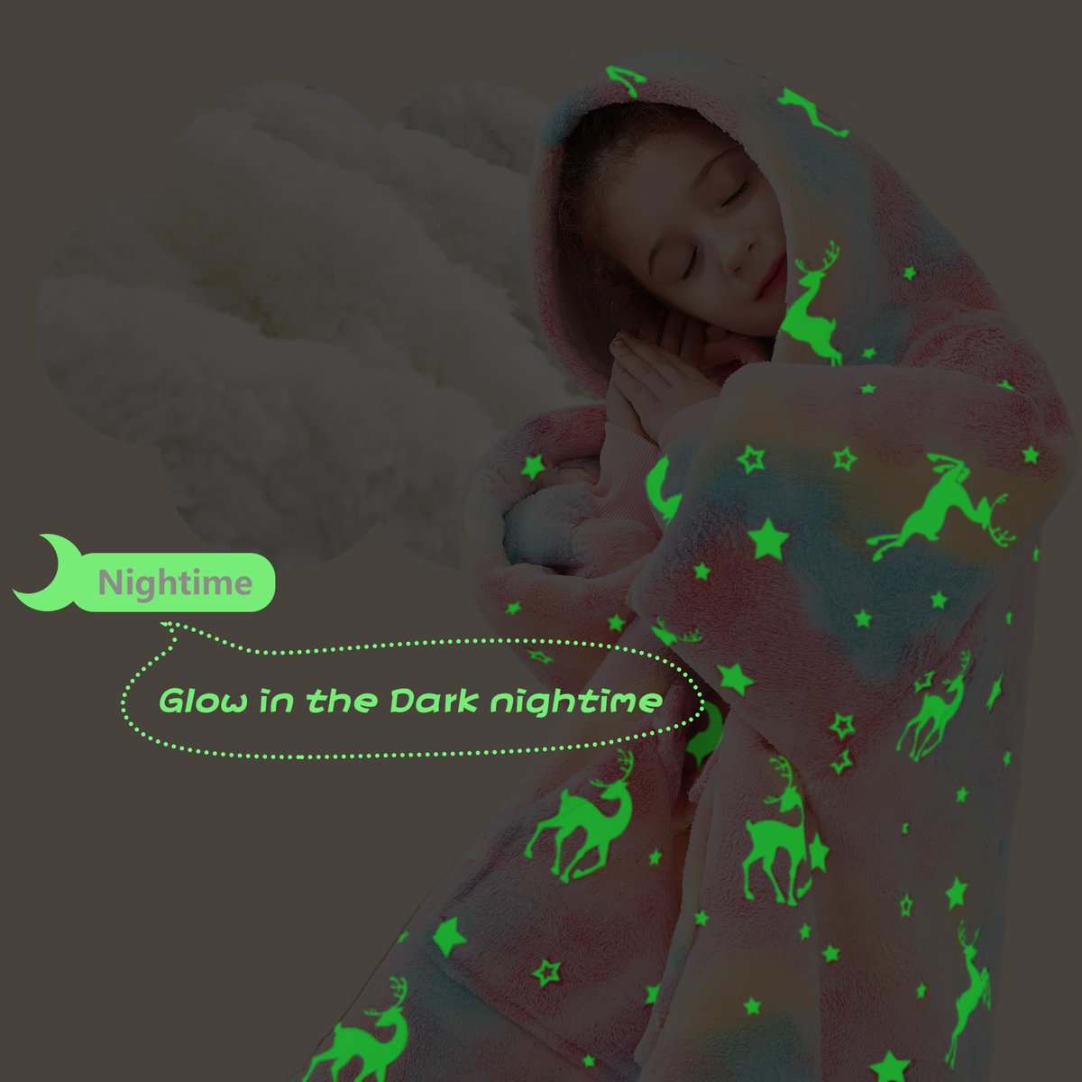 Manta con capucha Glow in The Dark para Niños Sherpa