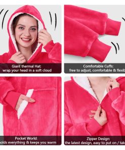 4. Diseño Elaborado: Nuestras snuggies utilizan un diseño grueso y alargado. Una manta con capucha para adultos con una longitud de 34 – 43 pulgadas estará por debajo de tus rodillas y por encima de tus tobillos, lo que significa que no arrastra en el suelo al caminar, como una sudadera extragrande. Acuesta tus rodillas en tu pecho y siéntate en el sofá, donde la manta cubre completamente. Cuando estás acostado en el sofá, puede ser tan esponjoso, suave y cálido como una manta regular o eléctrica.