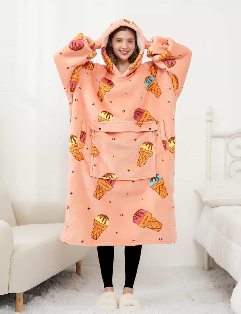 Manta con capucha KFUBUO para adulto de sherpa largo con
