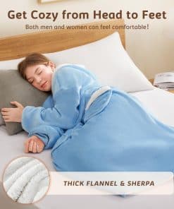 1. LA MÁXIMA COMODIDAD CÁLIDA: Hemos utilizado tejido suave de franela de 220 GSM y sherpa de 200 GSM para completar nuestra manta con capucha de gran tamaño que resistirá las frías mañanas de invierno. Su tejido premium también ofrece un tacto suave único.