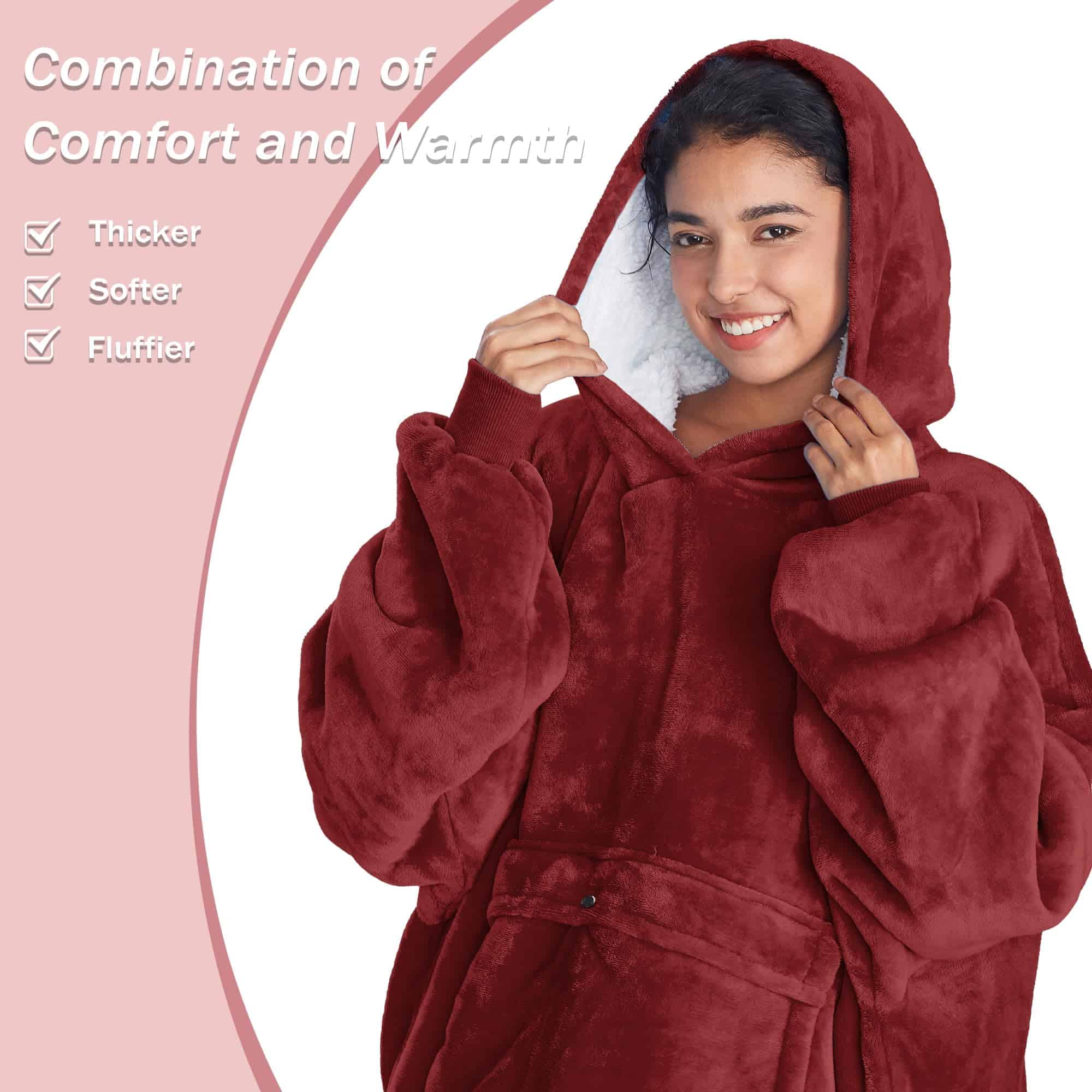 3. Nuestra sudadera con manta reversible y extra grande es acogedora con un tacto suave. No importa por qué lado elijas usarla, el sherpa mullido o el material de microfelpa suave, ambas telas son extremadamente suaves con una sensación cálida y cómoda para todo tu cuerpo.