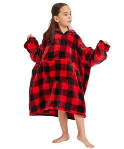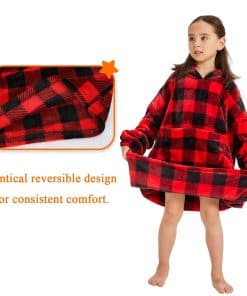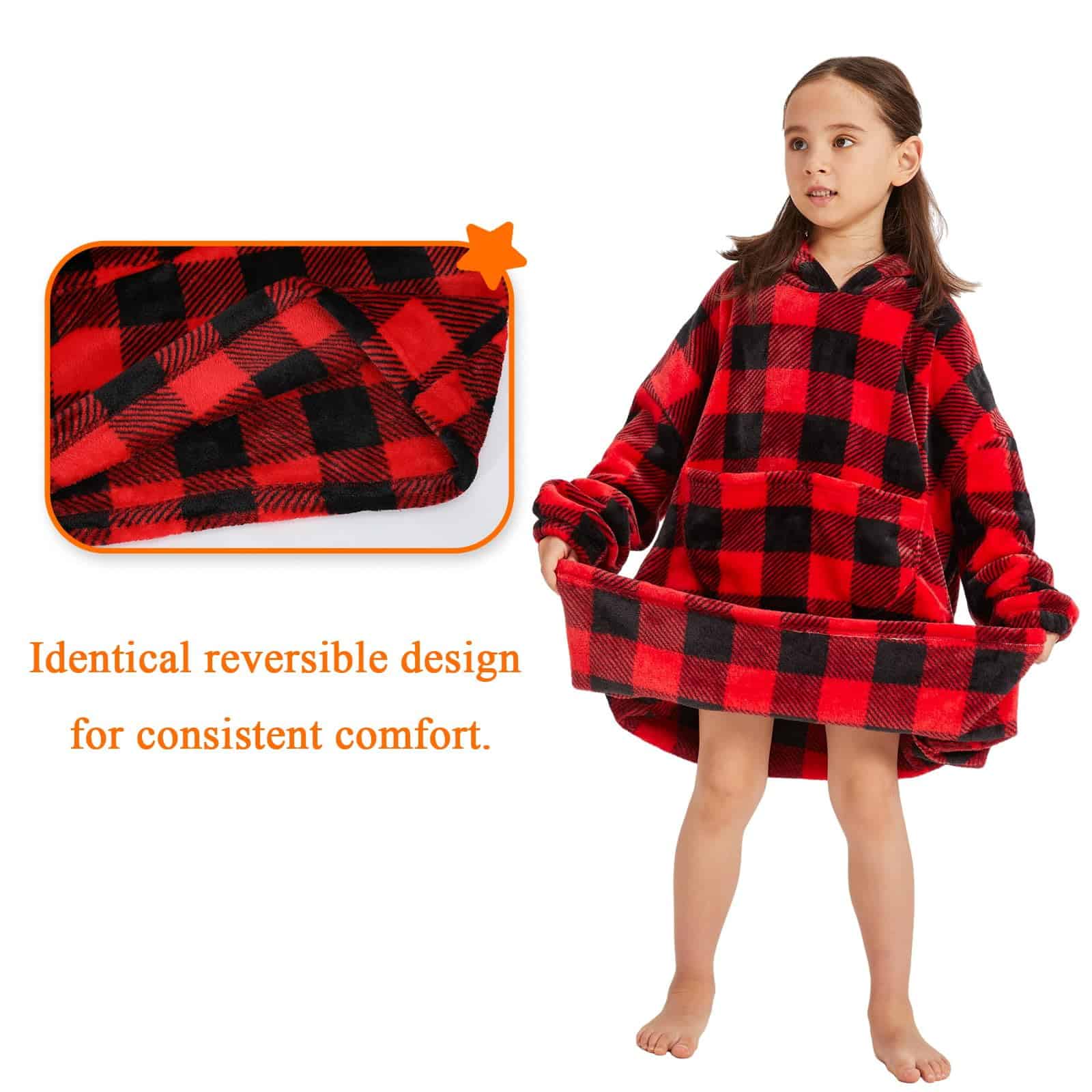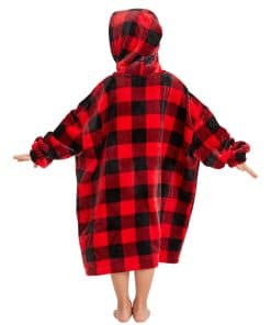 Manta con capucha para adolescentes en cuadros rojos y