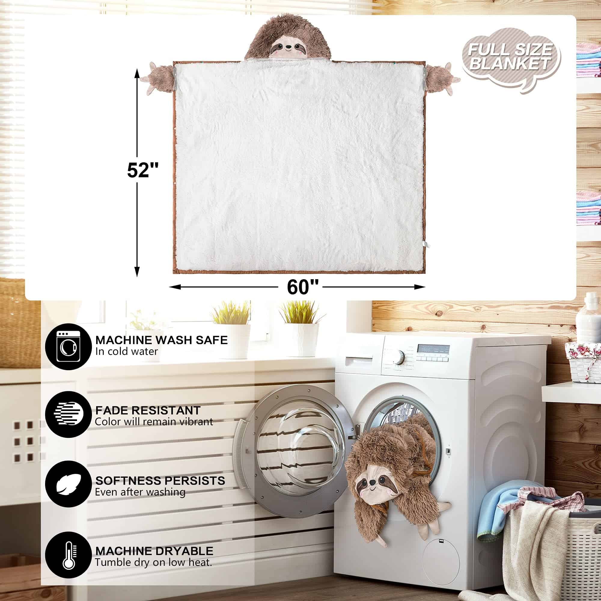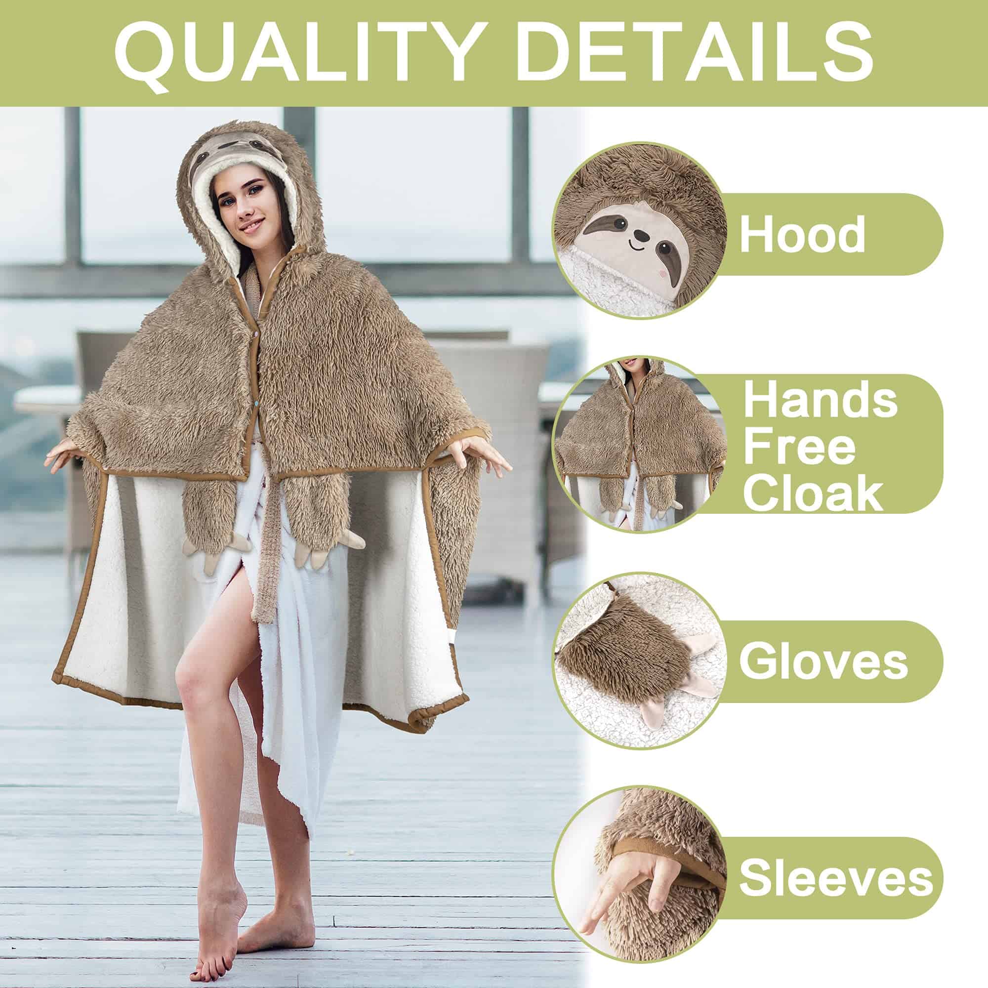 Manta con capucha para adultos con diseño de perezoso – Súper suave y esponjosa de piel sintética peluda, cálida y acogedora de felpa peluda y forro de sherpa. Regalos de perezoso para mujeres, adultos y niños. Perfectamente empaquetado y listo para sacar sonrisas a tus seres queridos (madres, padres, hijas, hermanas, hermanos, esposas, esposos, hijos, amigos y colegas) en cumpleaños y Navidad. Versátil y conveniente. Ve manos libres y úsalo cómodamente como un manto cuando quieras tomar tu café matutino afuera o trabajar en la oficina. Te abriga mientras te permite moverte libremente. LAVABLE A MÁQUINA – ¡Fácil de lavar! Solo mételo en la lavadora en frío suave y luego sécalo a baja temperatura por separado. Sale como nuevo para abrazos perfectos cada vez. UN TAMAÑO PARA TODOS – Esta manta de animal grande y cómoda es perfecta para todas las formas y tamaños. Tamaño: 60 x 52 ¡Te mantiene caliente de pies a cabeza donde sea que vayas!