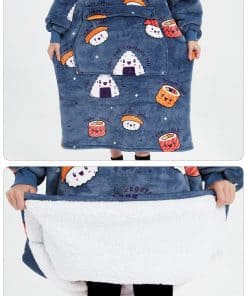 Manta con capucha para adultos con diseño de sushi y forro