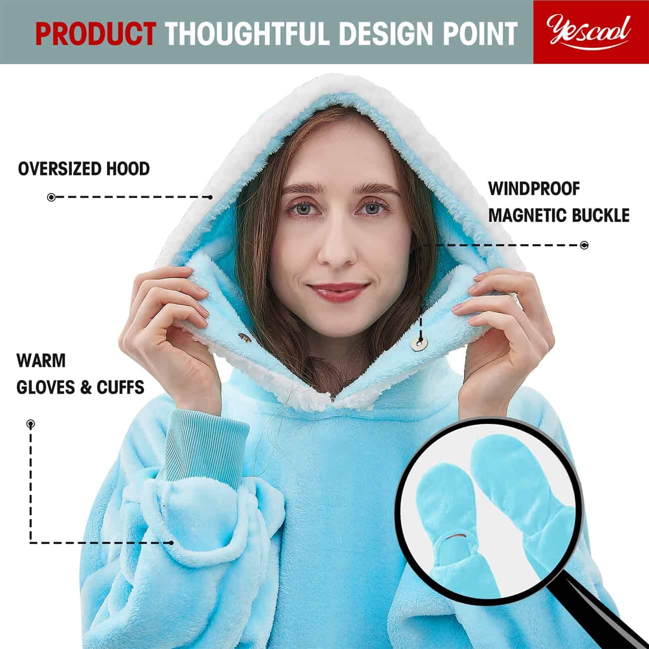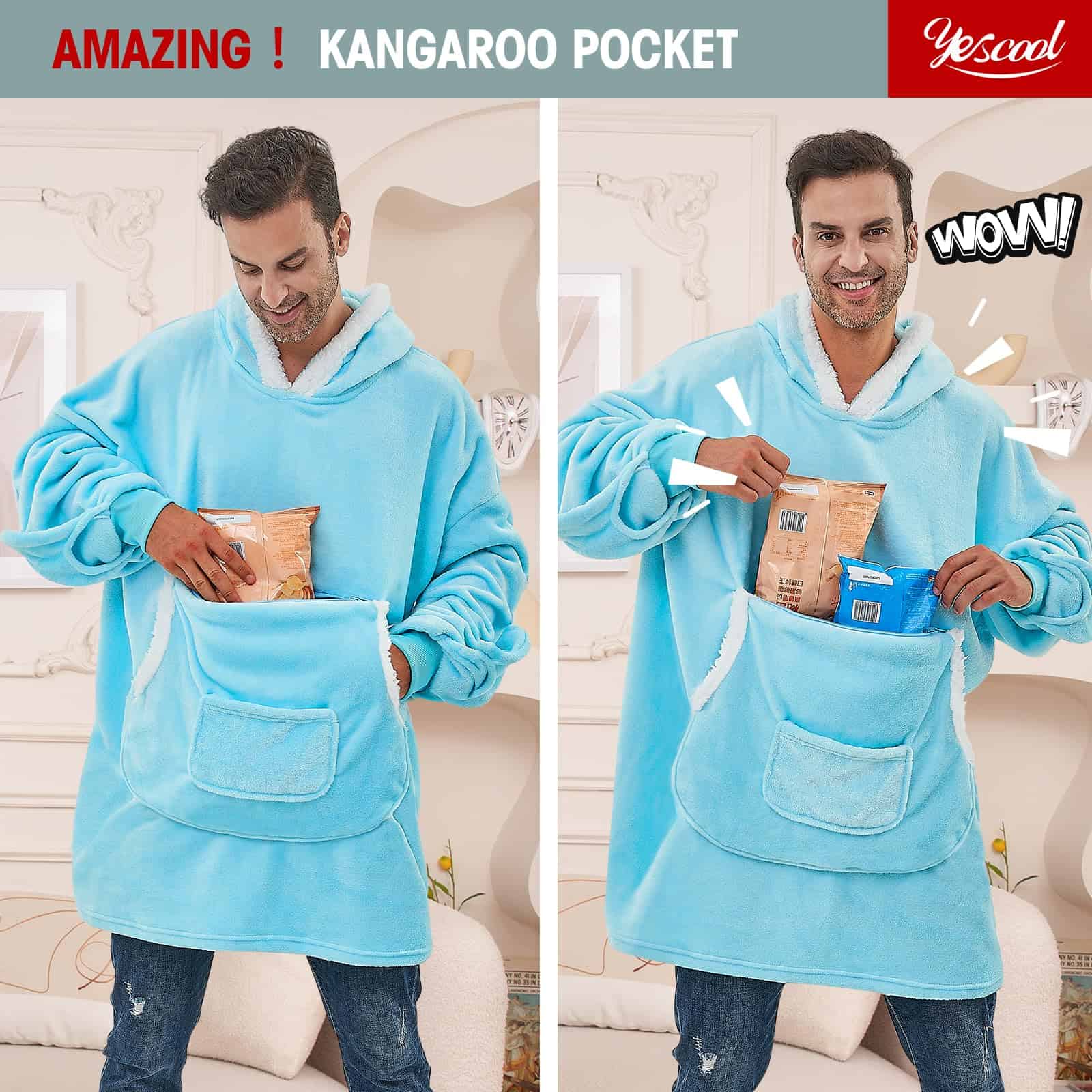 1. MANTA CON CAPUCHA CÁLIDA: Esta manta con capucha adecuada para adultos y niños está hecha con tela de fleece y sherpa, las mantas con capucha tienen botones ocultos en la capucha y el cuello que te mantienen caliente sin importar cuán baja sea la temperatura. También es una manta con capucha conveniente para uso en casa y al aire libre, como ver la televisión, trabajar en una computadora portátil o escalar montañas. 2. DISEÑO PRÁCTICO DE LA MANTA CON CAPUCHA: Nuestra acogedora manta con capucha cuenta con un enorme bolsillo que puede contener todos tus artículos esenciales y más, como teléfono, bocadillos, etc. ¿Qué pasa si tu cuerpo está caliente y tus manos están frías ¡No te preocupes! Tenemos guantes adjuntos en los puños, ¡así que todo lo que tienes que hacer es desabrocharlos y ponerlos!. 3. MANTA CON CAPUCHA EXTRA GRANDE Y PERSONALIZADA: La sudadera con capucha de cobertor extragrande es perfecta para adultos, mujeres, hombres, niños, niñas, adolescentes, sentarse en el sofá, cama, cine, parque, playa o cualquier otra ocasión. Sin impacto en tu experiencia de caminar, trabajar o entretenimiento. ¡Ahora puedes llevar tu manta a todas partes! 4. BUEN COMPAÑERO EN EL VIAJE: Si no quieres empacar una maleta extra para tus mantas cuando viajas, por favor elígenos. Nuestra manta con capucha se dobla en una almohada de viaje con bolsillo que se puede colgar en tu maleta. Es un excelente compañero para actividades al aire libre como senderismo, camping, picnics. 5. IDEAL PARA REGALAR: La manta con capucha de yescool es un regalo muy dulce para tu familia, mamá, novia, hijos, amigos y colegas, niñas adolescentes, abuela, esposa, hermana y ¡mucho más! ¡Perfecto para regalos de cumpleaños, regalos para la universidad, regalos de San Valentín, regalos del Día de la Madre, regalos de Acción de Gracias, regalos de Navidad, regalos de novia, regalos de Año Nuevo y todos los regalos de vacaciones!