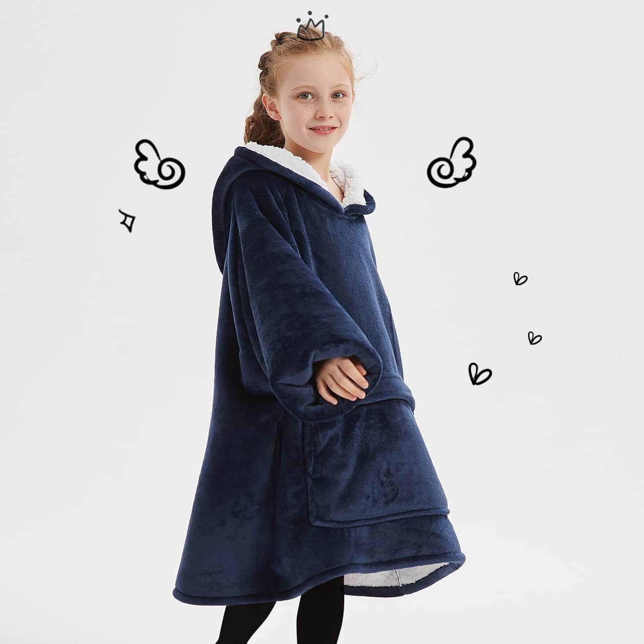 Manta con capucha para niños KFUBUO -Azul Marino