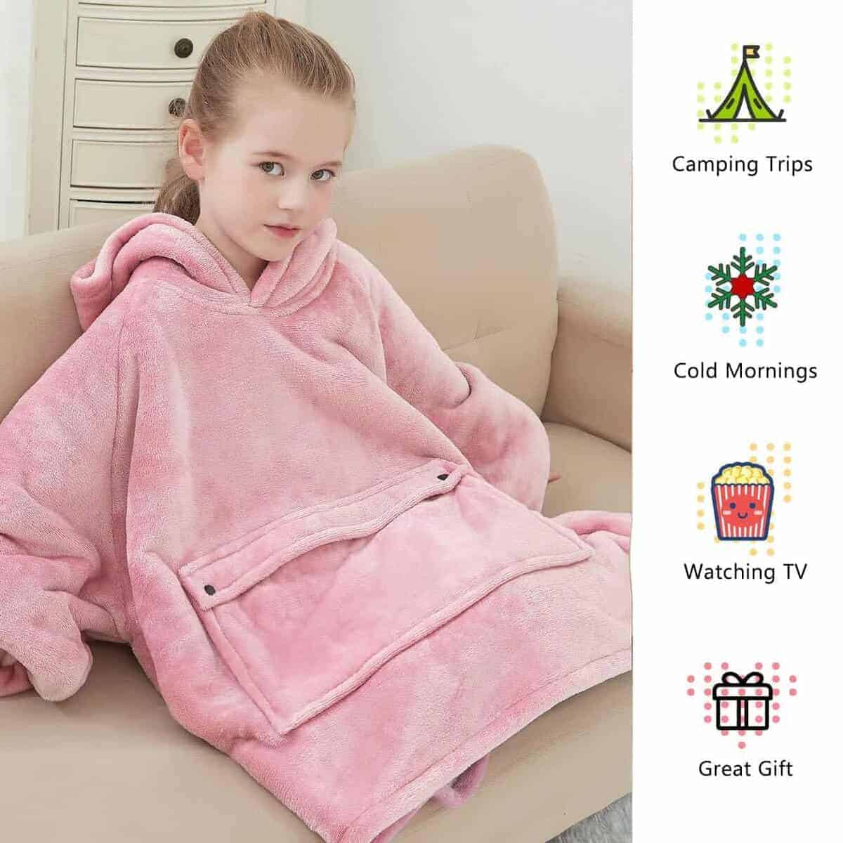 La manta con capucha para niños KFUBUO combina la eficiencia del diseño de la sudadera con capucha, lo que resulta en mantas con capucha muy cómodas y muy cálidas. Un poco más espacioso en comparación con una sudadera normal, por lo que puedes acurrucar tu cuerpo y levantar las piernas para meter la manta sudadera bajo los talones. Esta manta con capucha es completamente lavable a máquina y se puede secar a baja temperatura, lo cual facilita su mantenimiento. ¡Esto significa que tu manta olerá divina y se verá como nueva siempre que quieras! ¡La gran capucha y los bolsillos profundos mantienen la cabeza y el cuello calientes y sirven como almohada para acostarse. Los bolsillos profundos están equipados para guardar bocadillos, el teléfono móvil o el control remoto. Las sudaderas con manta no serán tan restrictivas como la ropa de hogar. Talla única, adecuada para niños de 6 a 10 años, niños y niñas, y viene en 9 diseños de patrones, por lo que también cumplirá con las preferencias de estilo de cualquiera!