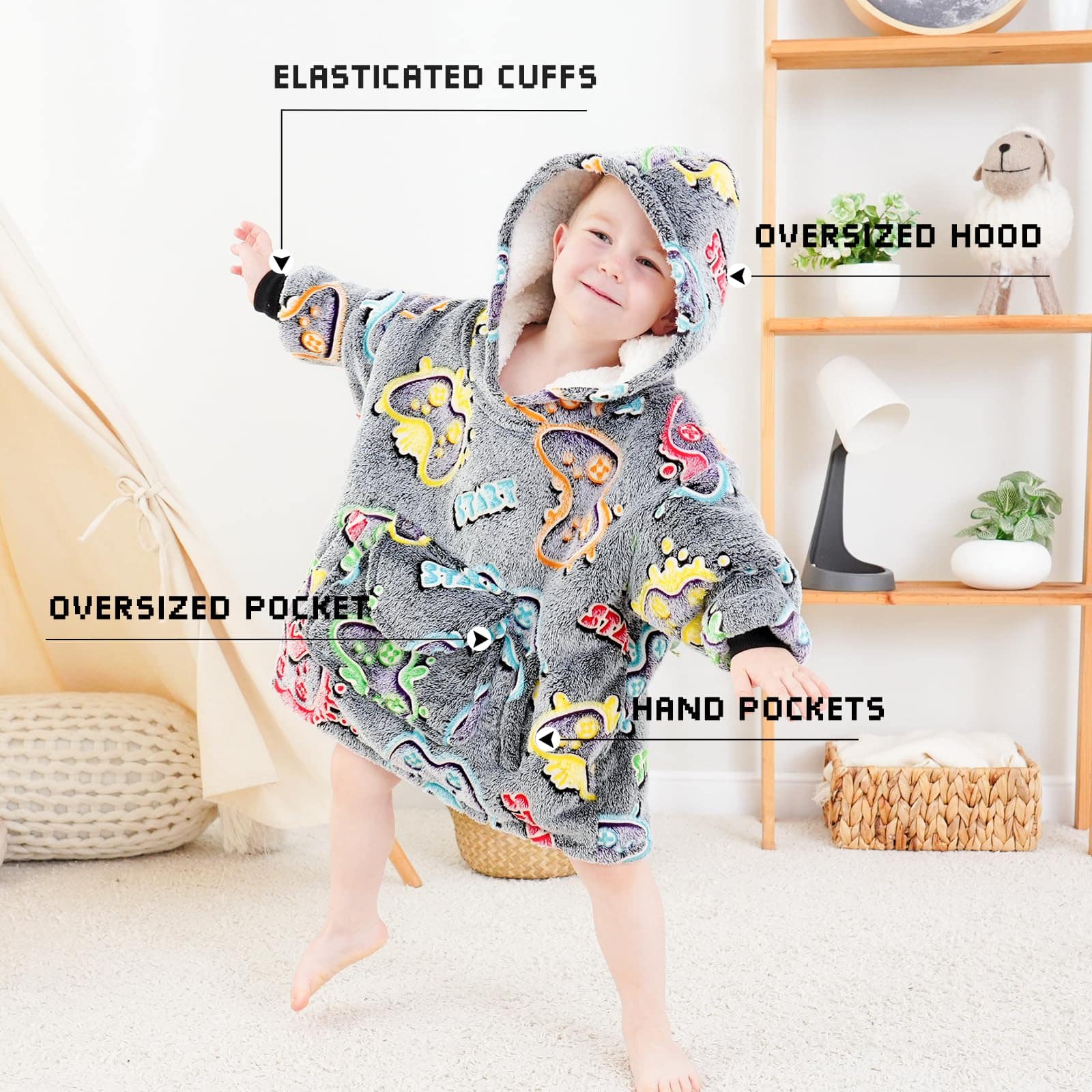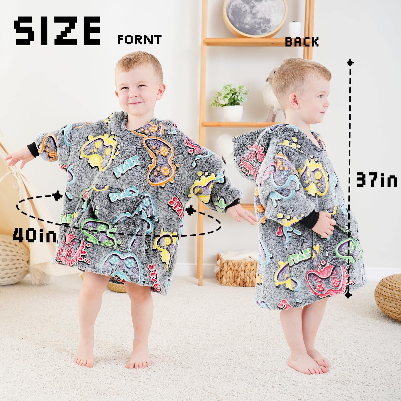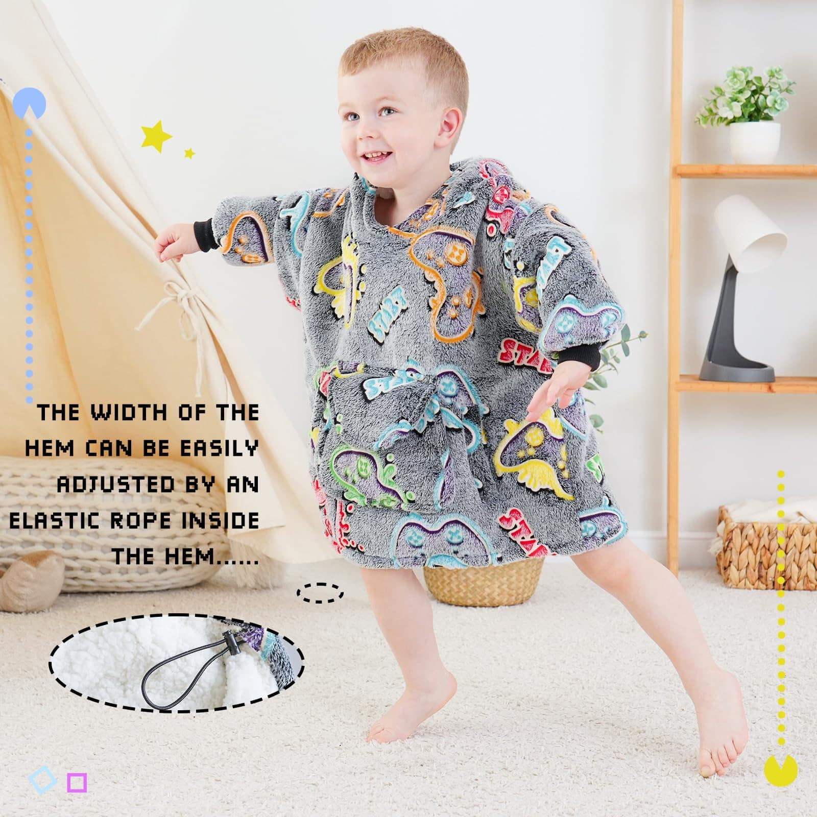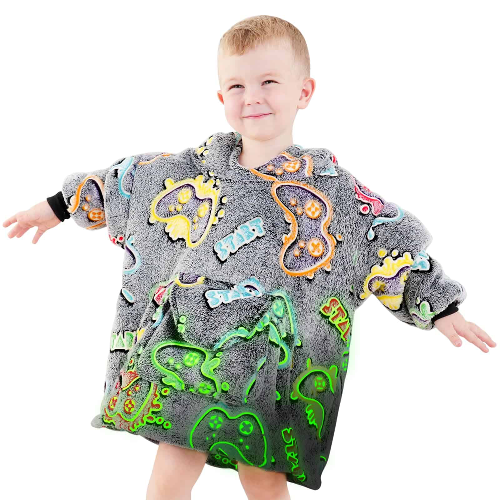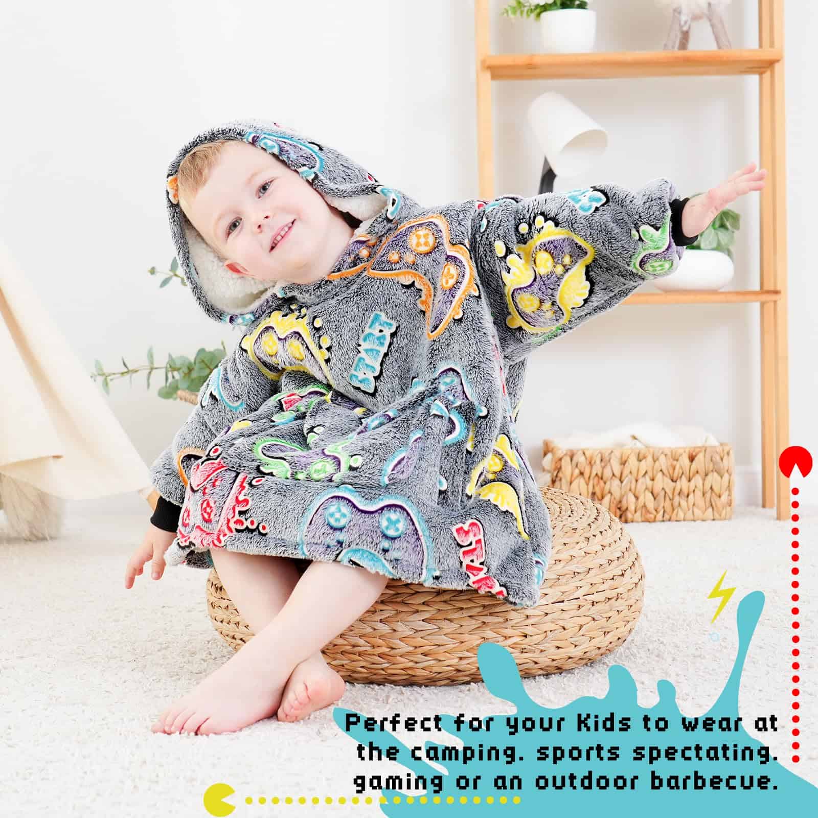 La manta con capucha para jugadores es el regalo perfecto para niños y niñas que aman los videojuegos. Confeccionada con material de franela de felpa, esta manta proporciona calidez y comodidad durante las estaciones frías. El diseño con bolsillo gigante permite almacenar de forma conveniente todos tus artículos favoritos, mientras que el diseño de capucha te brinda un aspecto moderno y práctico. Una talla única que se adapta a la mayoría de niños y niñas de 2 a 6 años, con mangas con puños acanalados para un ajuste seguro y elegante. Además, al exponer la manta a la luz brillante o al sol, podrás ver cómo brilla en la oscuridad, agregando un toque de magia a la experiencia. Ya sea para su uso en interiores o al aire libre, esta manta con capucha para jugadores es versátil y perfecta para cualquier ocasión. Sorprende a los pequeños amantes de los videojuegos con este divertido regalo que les permitirá disfrutar al máximo de sus momentos de juego.