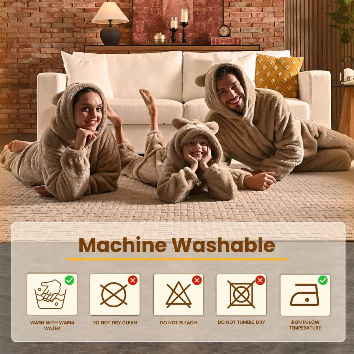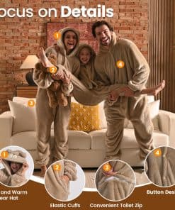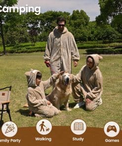 3. Pijama de Oso Versátil La manta con capucha wearable es un accesorio versátil y acogedor diseñado para adaptarse a una variedad de tamaños de cuerpo. Puede ser utilizado como manta de interior o de exterior, además de como disfraz para juegos de rol, actuaciones, Halloween y celebraciones festivas.
