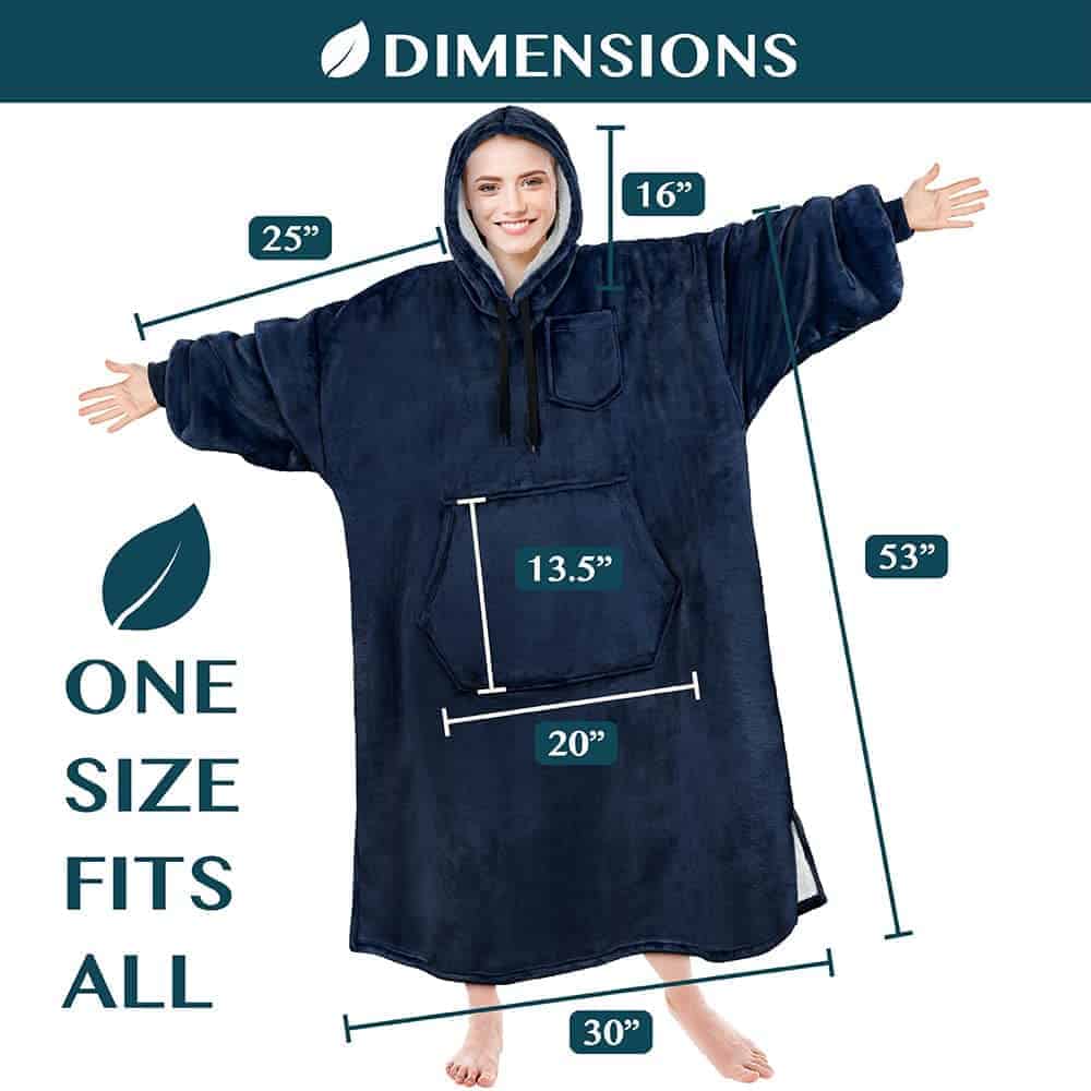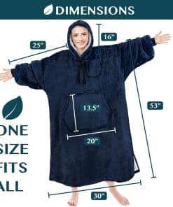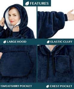 1. MANTA CON CAPUCHA PONIBLE PARA MUJERES Y HOMBRES: Nuestras mantas con capucha son la prenda ponible definitiva para cada ocasión. Hechas con microfibra de lana súper suave y forro reversible de sherpa, esta manta ponible es el suéter grande perfecto para adultos de todas las edades, desde esposas, esposos, mamás y papás hasta novias, novios y universitarias. Mantén a ti y a tu familia acogedores todos los días al abrazarte con nuestra manta con capucha cálida, esponjosa y gigante.