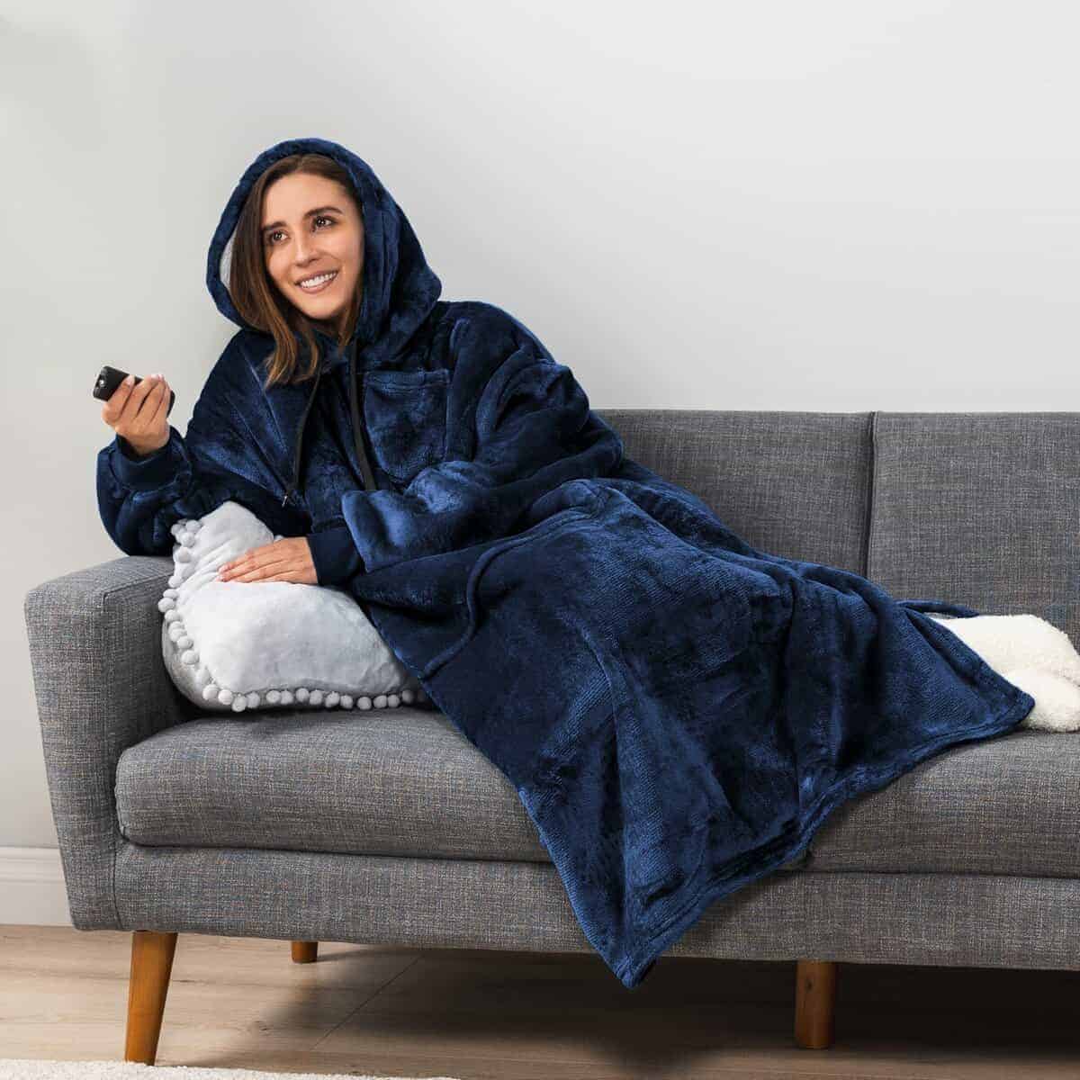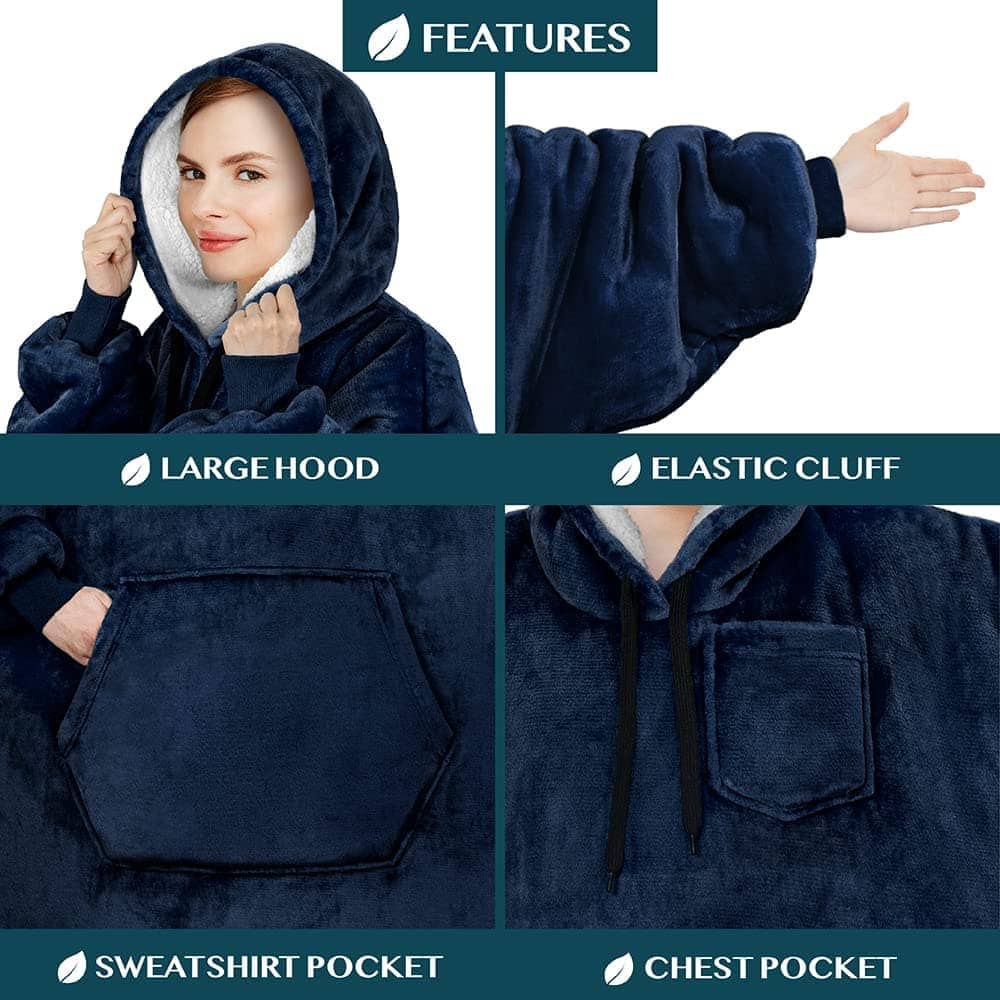 4. MANTA CON CAPUCHA DE REGALO AZUL MARINO: Nuestra manta con capucha azul marino extragrande es el regalo perfecto para hombres, mujeres y adultos para la temporada de fútbol, vacaciones, cumpleaños, Día de la Madre, Día del Padre, Navidad. Gran idea de regalo para sorprender a tu mamá, papá, novia, novio con un regalo de relajación acogedor. Nuestra manta ponible también es un regalo ideal para amigos, regalos para ella, regalos para él, regalos para la esposa, regalos geniales, regalos para la hermana y mucho más.