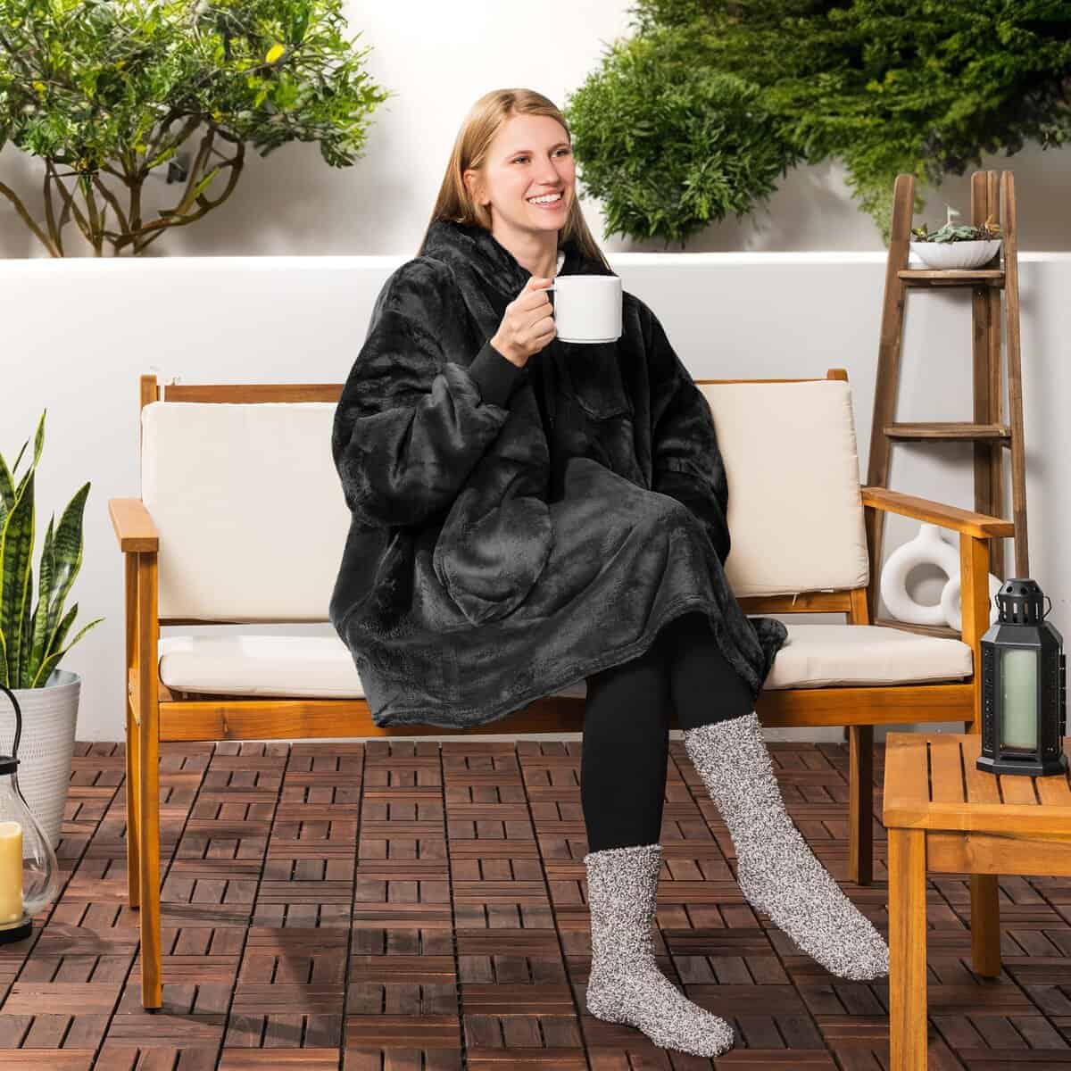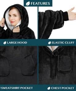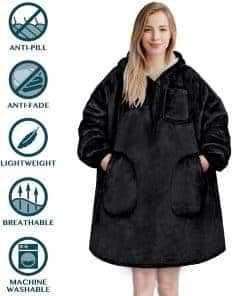 1. MANTA CON CAPUCHA WEARABLE PARA MUJERES Y HOMBRES: Nuestras mantas con capucha son tu mejor opción para cada ocasión. Hechas con microfibra de polar súper suave y forro reversible sherpa, esta manta wearable es el suéter oversized perfecto para adultos de todas las edades, desde esposa o esposo, mamá y papá hasta novias, novios y chicas de la universidad. Mantente tú y tu familia acogedoros todos los días al envolverte con nuestra manta gigante y cálida con capucha.