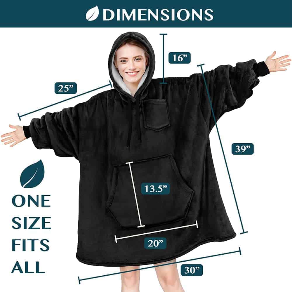 1. MANTA CON CAPUCHA WEARABLE PARA MUJERES Y HOMBRES: Nuestra manta con capucha es la prenda perfecta para cualquier ocasión. Hecha con microfibra suave y forro reversible de sherpa, esta manta wearable es la sudadera oversized ideal para adultos de todas las edades, desde esposas, esposos, mamás y papás hasta novias, novios y universitarias. Mantén a tu familia y a ti mismo abrigados todos los días al envolverte con nuestra cálida, esponjosa y gigante manta con capucha. 2. MANTA WEARABLE NEGRA Y ACOGEDORA: La manta de cuerpo entero PAVILIA ofrece confort diario para hombres y mujeres, manteniéndote cálido y acogedor en los días más fríos de otoño e invierno. Esta sudadera gigante es increíblemente suave, cómoda y lujosa. Nuestra manta con capucha oversized proporciona la cantidad perfecta de calor y es ideal para actividades tanto en interiores como al aire libre, como dormir, ver la televisión, relajarse en casa, leer, jugar videojuegos, en eventos deportivos, acampar o tomar una siesta. 3. MANTA CON BOLSILLO GRANDE PARA HOMBRES Y MUJERES: La manta wearable de PAVILIA cuenta con un bolsillo gigante, manteniendo tus manos calientes durante los días y noches frías. Nuestro manta con capucha de sherpa también tiene un pequeño bolsillo frontal, perfecto para guardar tus dispositivos móviles como teléfonos, tabletas y controles remotos. No más buscar tus esenciales mientras estás abrigado con todo lo que necesitas con puños elásticos en las mangas para total movilidad, calidez y cobertura. 4. REGALO DE MANTA CON CAPUCHA NEGRA: Nuestra manta con capucha en negro es el regalo perfecto para hombres, mujeres y adultos para la temporada de fútbol, fiestas, cumpleaños, Día de la Madre, Día del Padre, Navidad. Idea de regalo para sorprender a tu mamá, papá, novia, novio con un regalo acogedor. Nuestra manta wearable también es perfecta como regalo para amigos, regalos para ella, regalos para él, regalos para esposa, regalos geniales, regalos para hermana y mucho más!. 5. UN TAMAÑO PARA TODOS EN LA MANTA CON CAPUCHA: Diseñado para ser grande y espacioso, esta sudadera con capucha es adecuada para adultos, mujeres, hombres e incluso adolescentes y jóvenes altos. Ofrece un ajuste cómodo y relajado que cualquiera puede disfrutar. La manta con capucha de PAVILIA es lavable a máquina y fácil de cuidar. Simplemente métela con colores similares y sécala a baja temperatura. Nuestra manta con capucha de sherpa se vuelve aún más suave con cada lavado, asegurando confort duradero.