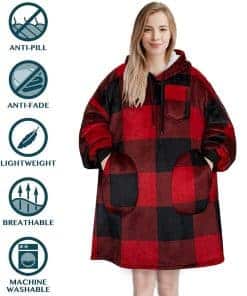 4. REGALO DE MANTA CON CAPUCHA ROJA: Nuestra manta de cuadros rojos extragrande es el regalo perfecto para hombres, mujeres y adultos para la temporada de fútbol, fiestas, cumpleaños, Día de la Madre, Día del Padre, Navidad, etc. Excelente idea de regalo para sorprender a tu mamá, papá, novia, novio con un regalo de relajación acogedor. Nuestra manta con capucha también es un regalo ideal para amigos, regalos para ella, regalos para él, regalos para esposa, regalos geniales, regalos para hermana y mucho más!.