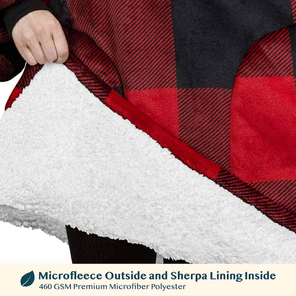 1. MANTA CON CAPUCHA WEARABLE PARA MUJERES Y HOMBRES: Nuestras mantas con capucha son la prenda perfecta para cualquier ocasión. Hechas con microfibra súper suave y forro reversible de sherpa, esta manta con capucha wearable es el suéter extragrande perfecto para adultos de todas las edades, desde esposas y esposos, mamás y papás hasta novias, novios y universitarias. Mantén a ti y a tu familia acogedores todos los días al envolverte con nuestra manta con capucha cálida, peluda y gigante.