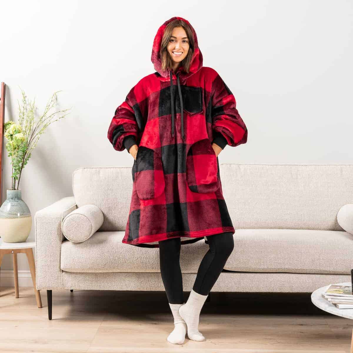 2. MANTA CON CAPUCHA ROJA DE CUADROS ACOLCHADA: La manta de cuerpo completo PAVILIA ofrece comodidad diaria para hombres y mujeres, manteniéndote cálido y acogedor en los días más fríos de otoño e invierno. Este suéter gigante es increíblemente suave, cómodo y lujoso. Nuestra manta con capucha extragrande brinda la cantidad perfecta de calor y es ideal para actividades tanto en interiores como al aire libre, como dormir, ver la televisión, descansar en la casa, leer, jugar videojuegos, en eventos deportivos, acampar o tomar una siesta.