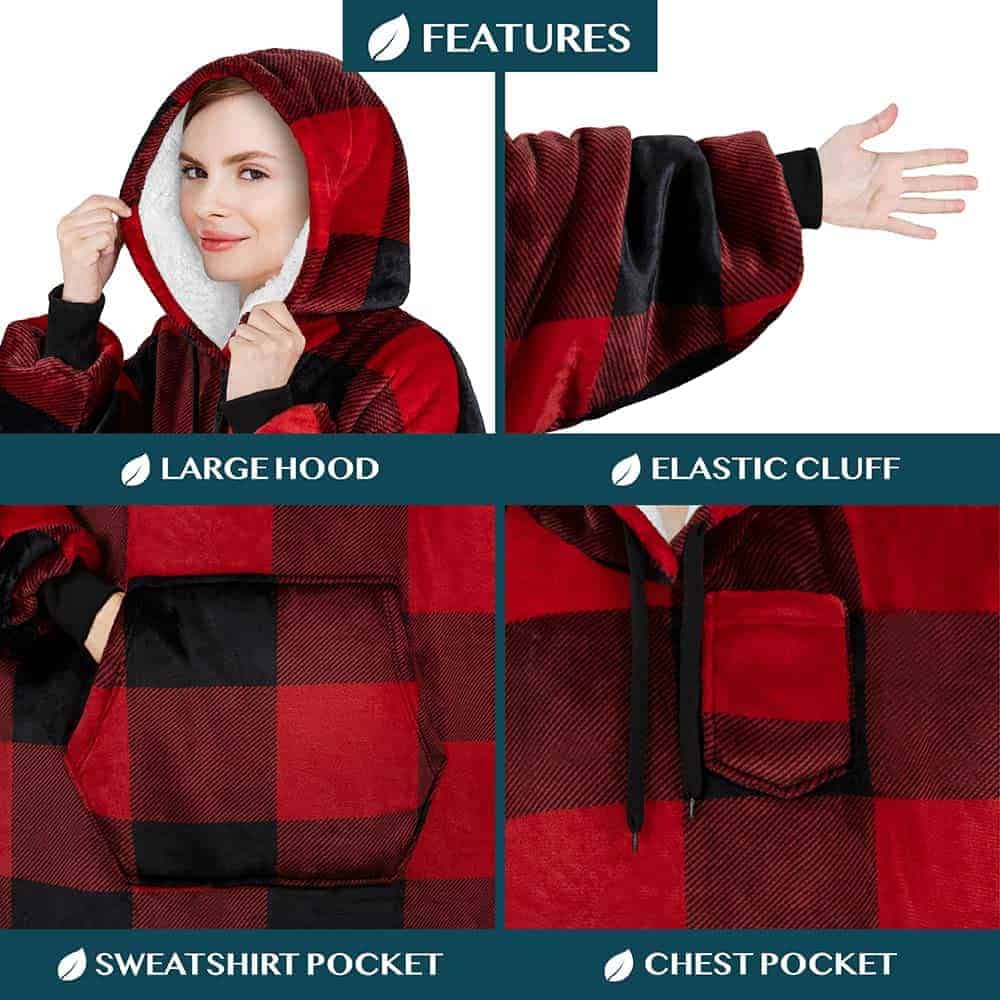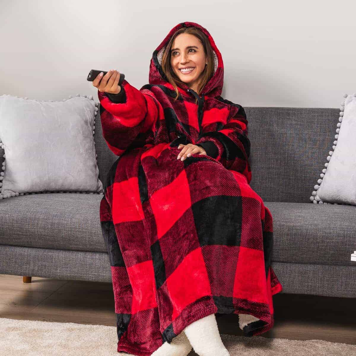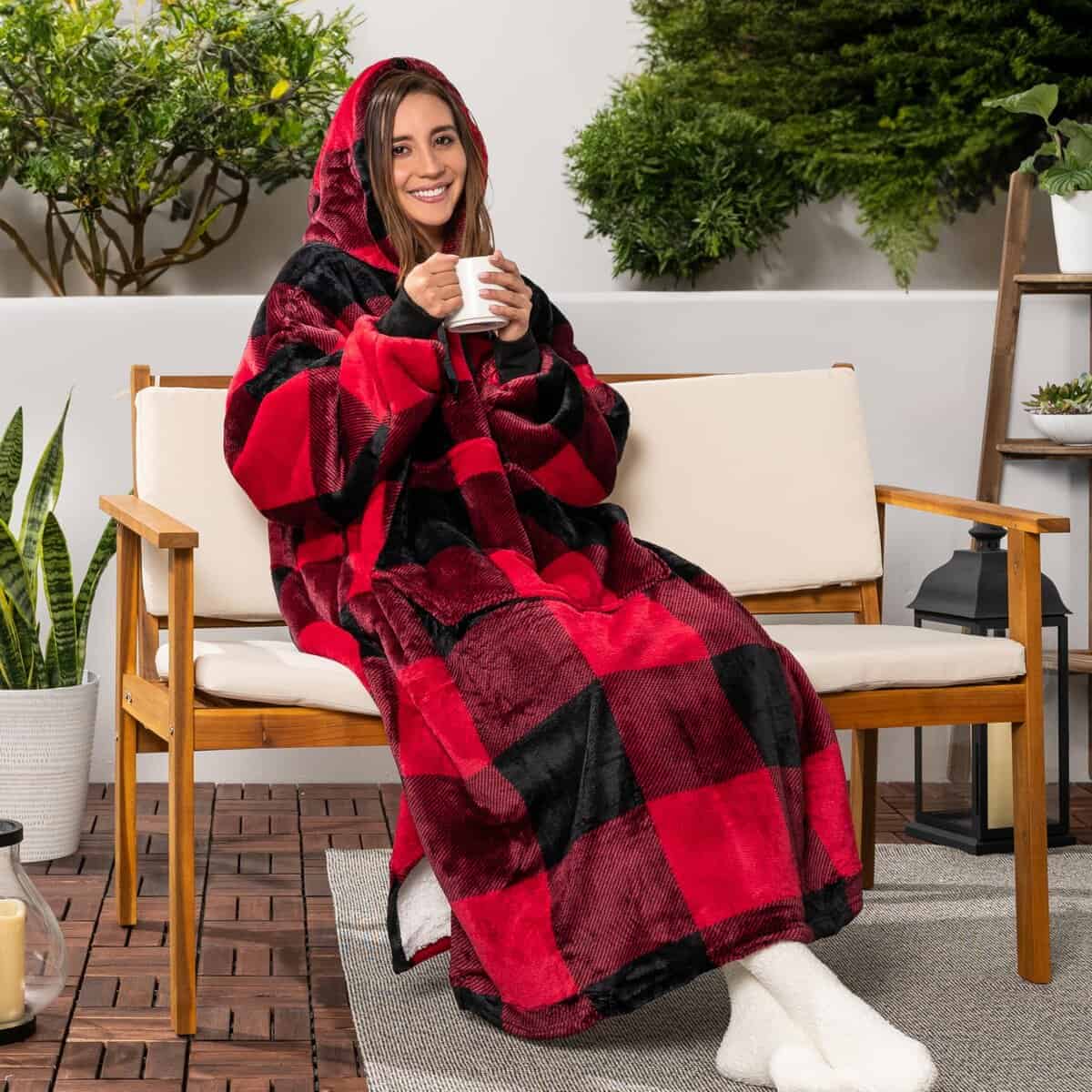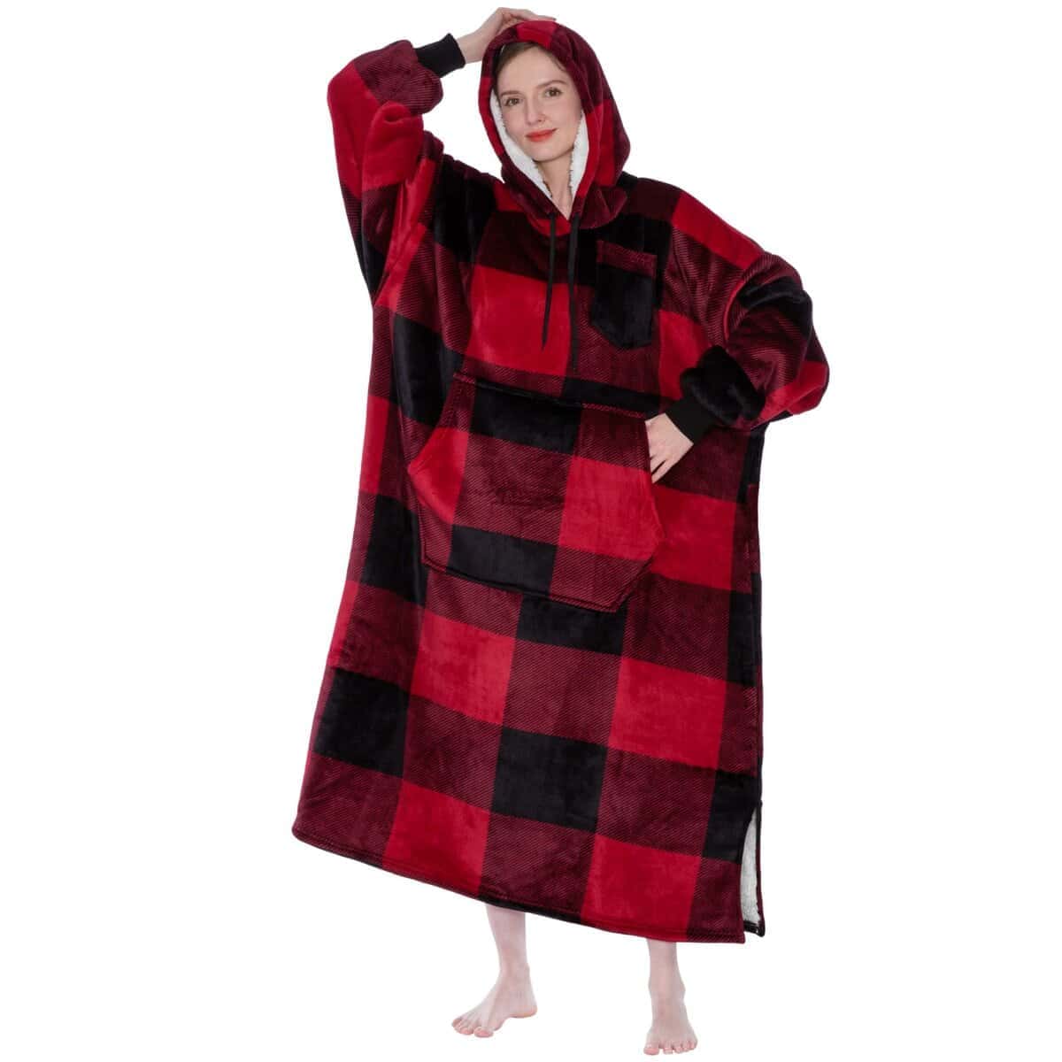 Manta con capucha PAVILIA para Mujer Roja, Manta Sherpa