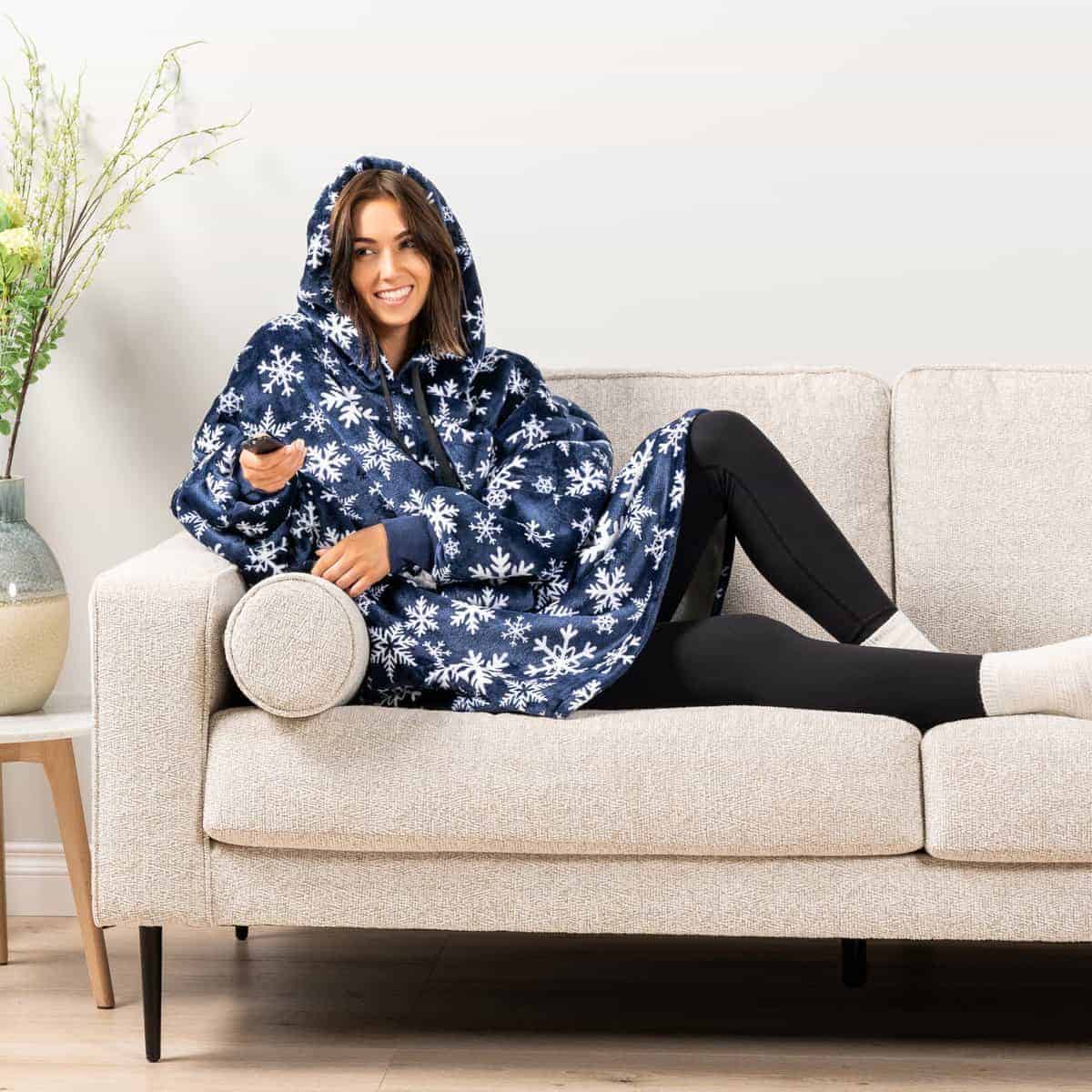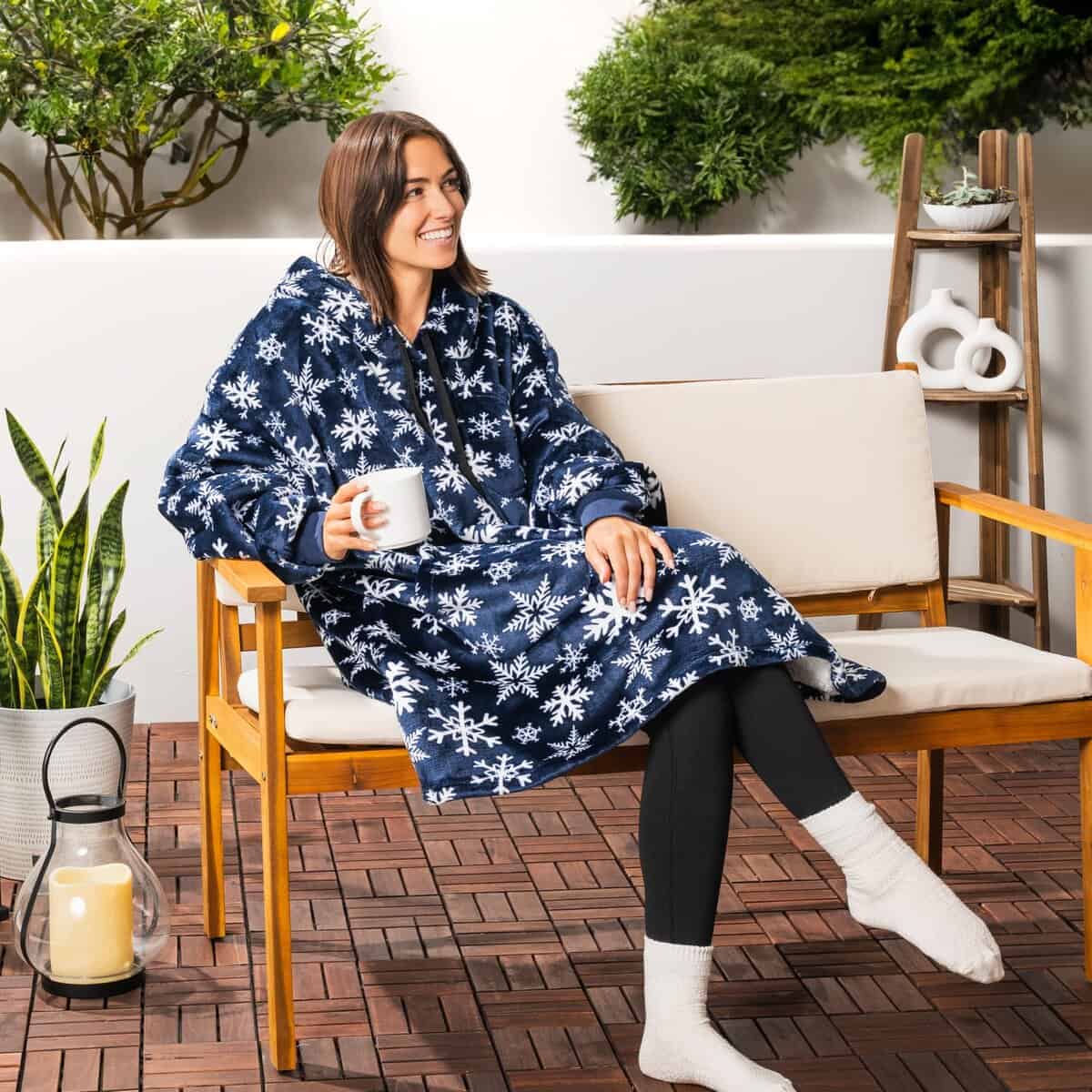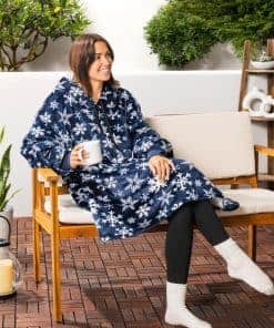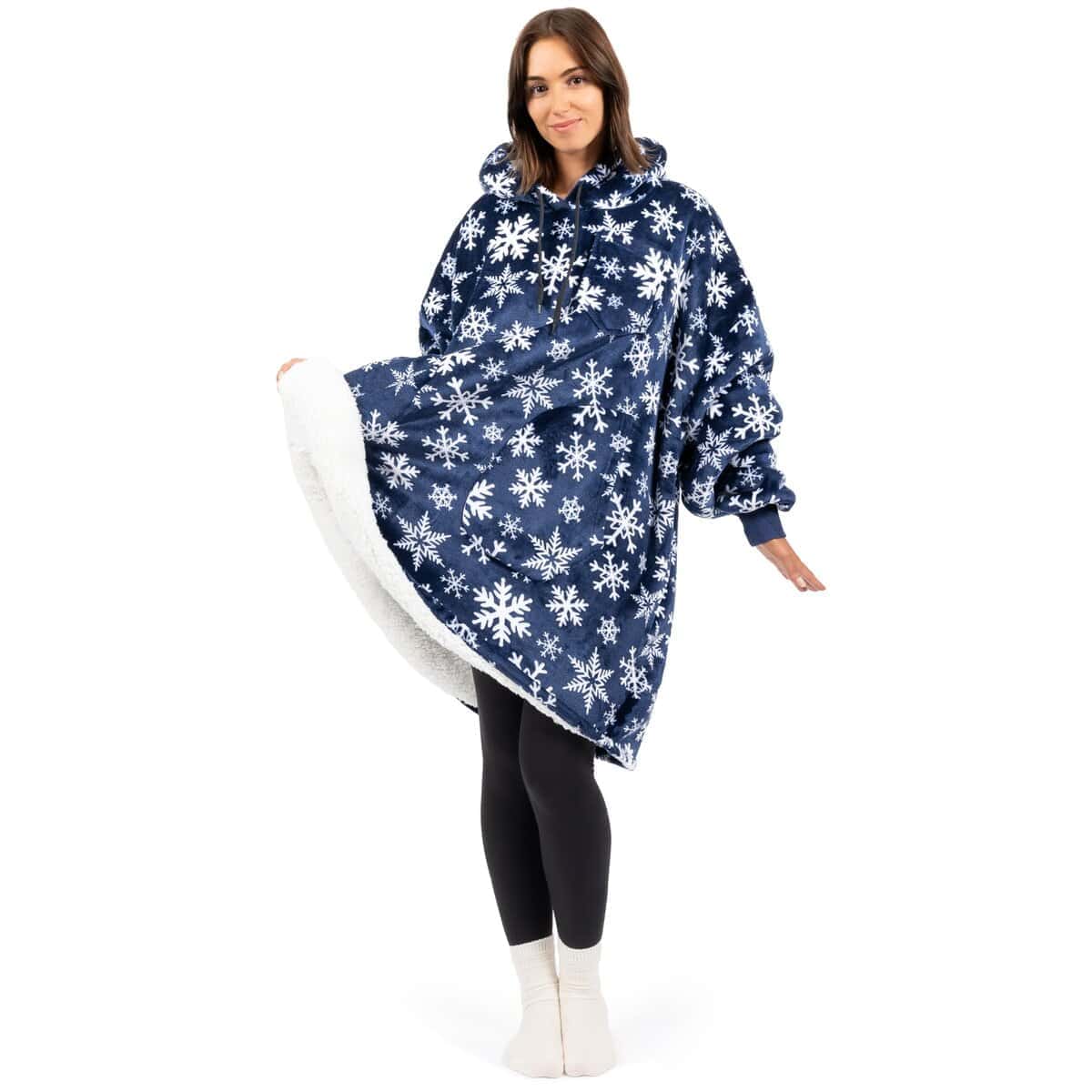 Manta con capucha PAVILIA para mujeres Azul, Manta usable para hombres, Suéter manta acogedor sobredimensionado, Manta con capucha de vellón cálido con mangas y dos bolsillos grandes, Azul Copo de nieve. Nuestras mantas con capucha son tu elección definitiva para cada ocasión. Hechas con vellón de microfibra súper suave y forro de sherpa reversible, esta manta usable es el suéter sobredimensionado perfecto para adultos de todas las edades, desde esposas o esposos, mamás y papás hasta novias, novios y universitarias. Mantén a ti y a tu familia acogedoros todos los días al envolverte con nuestra cálida, esponjosa y gigante manta con capucha. La manta de cuerpo completo PAVILIA ofrece comodidad diaria para hombres y mujeres, manteniéndote cálido y acogedor en los días más fríos de otoño e invierno. Este gigantesco suéter es increíblemente suave, cómodo y lujoso. Nuestra manta con capucha sobredimensionada brinda la cantidad perfecta de calor y es ideal para actividades tanto en interiores como en exteriores, como dormir, ver la televisión, descansar en casa, leer, jugar videojuegos, en eventos deportivos, acampar o tomar una siesta. La manta con capucha PAVILIA cuenta con dos bolsillos laterales, estas esponjosas mantas con capucha mantienen tus manos calientes durante días y noches frías. Nuestra manta de cuerpo de vellón sherpa también tiene un pequeño bolsillo frontal, perfecto para guardar tus dispositivos móviles como teléfonos, tabletas y controles remotos. ¡No más buscar tus esenciales mientras estás envuelto en calor con todo lo que necesitas con puños elásticos en las mangas para una movilidad, calor y cobertura total. Nuestra manta con capucha Azul Copo de nieve sobredimensionada es el regalo perfecto para hombres, mujeres y adultos para la temporada de fútbol, días festivos, cumpleaños, Día de la Madre, Día del Padre, Navidad. Gran idea de regalo para sorprender a tu mamá, papá, novia, novio con un regalo de relajación acogedor. Nuestra manta usable también grita regalos para amigos, regalos para ella, regalos para él, regalos para la esposa, regalos geniales, regalos para la hermana y mucho más. Diseñada para ser grande y espaciosa, esta manta con capucha es adecuada para adultos, mujeres, hombres e incluso adolescentes y juniors de talla grande. Ofrece un ajuste cómodo y relajado que cualquiera puede disfrutar. La manta con capucha PAVILIA es lavable a máquina y fácil de cuidar. Simplemente métela con colores similares y sécala a baja temperatura. Nuestra manta con capucha de sherpa se vuelve aún más suave con cada lavado, garantizando un confort duradero.