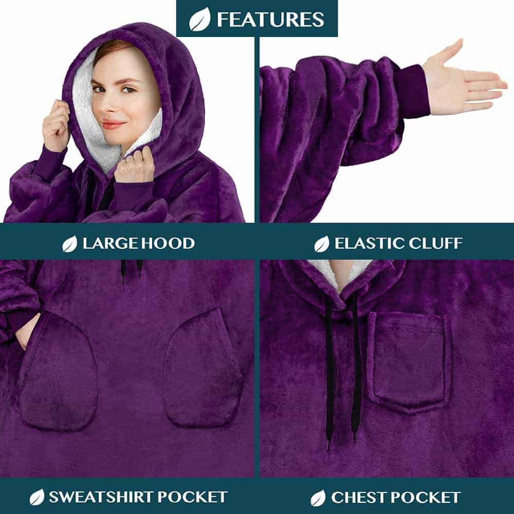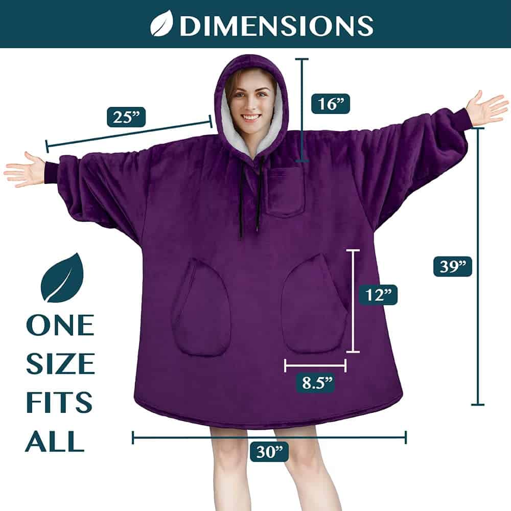 4. REGALO DE MANTA CON CAPUCHA MORADA: Nuestra manta con capucha morada extragrande es el regalo perfecto para hombres, mujeres y adultos para la temporada de fútbol, días festivos, cumpleaños, Día de la Madre, Día del Padre, Navidad. Excelente idea de regalo para sorprender a tu mamá, papá, novia, novio con un regalo de relajación acogedor. Nuestra manta ponible también es un regalo ideal para amigos, regalos para ella, regalos para él, regalos para la esposa, regalos geniales, regalos para hermana y mucho más!