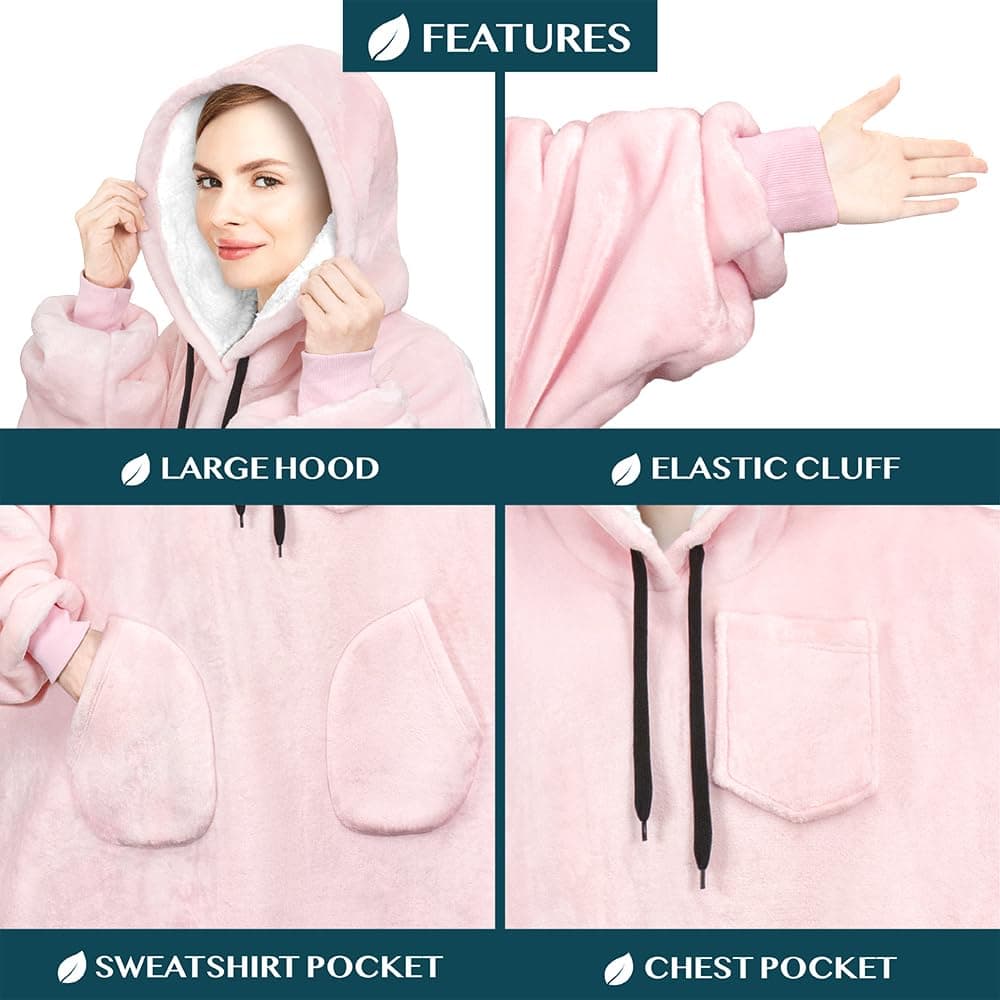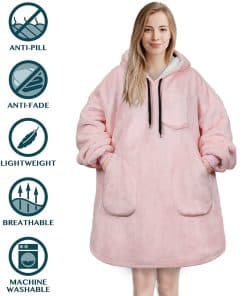 4. REGALO DE MANTA CON CAPUCHA ROSA: Nuestra manta con capucha extragrande Rosa es el regalo perfecto para hombres, mujeres y adultos para la temporada de fútbol, días festivos, cumpleaños, Día de la Madre, Día del Padre, Navidad. Idea de regalo fantastica para sorprender a tu mamá, papá, novia, novio con un regalo de relajación acogedor. Nuestra manta usable también grita regalos para amigos, regalos para ella, regalos para él, regalos para esposa, regalos geniales, regalos para hermana y ¡mucho más!