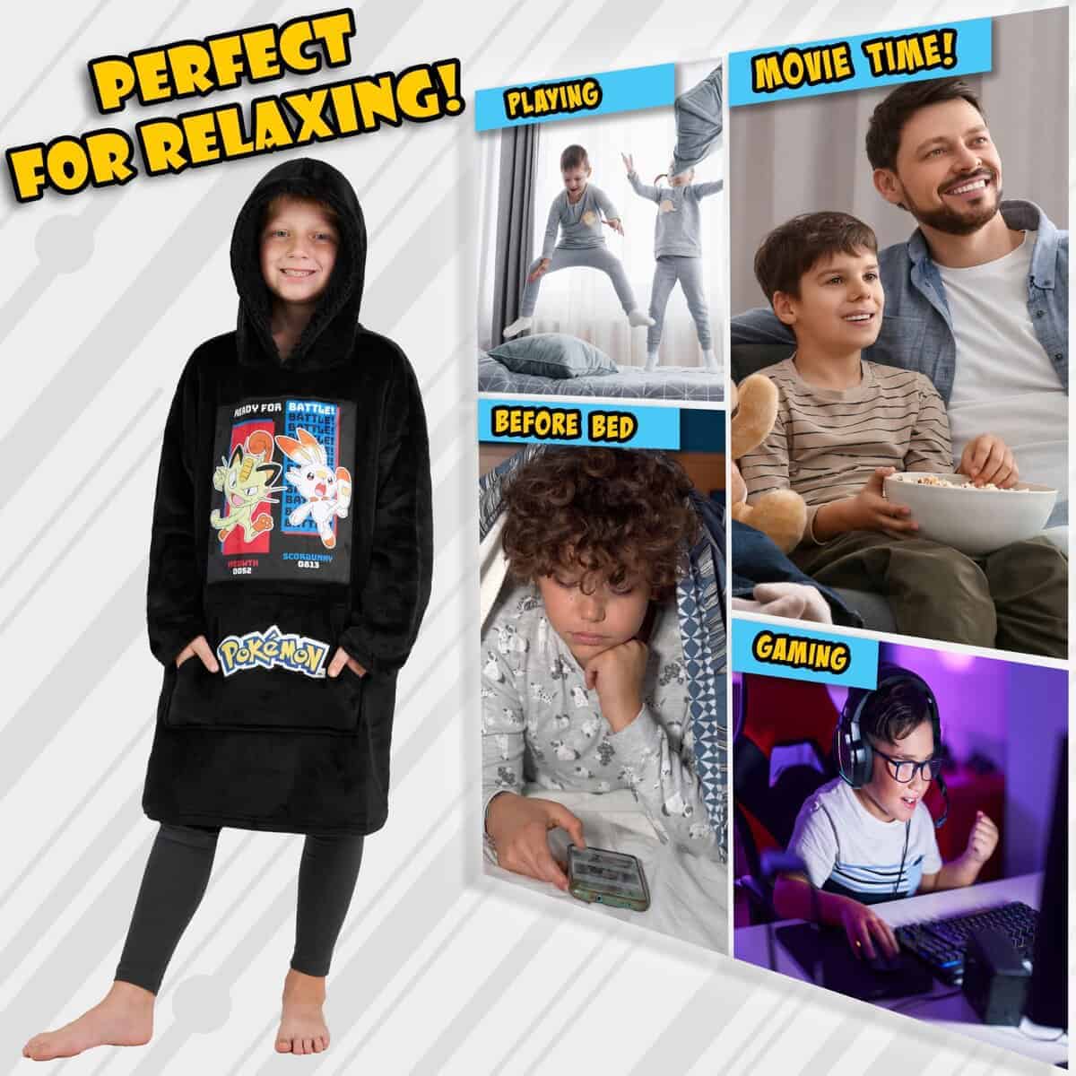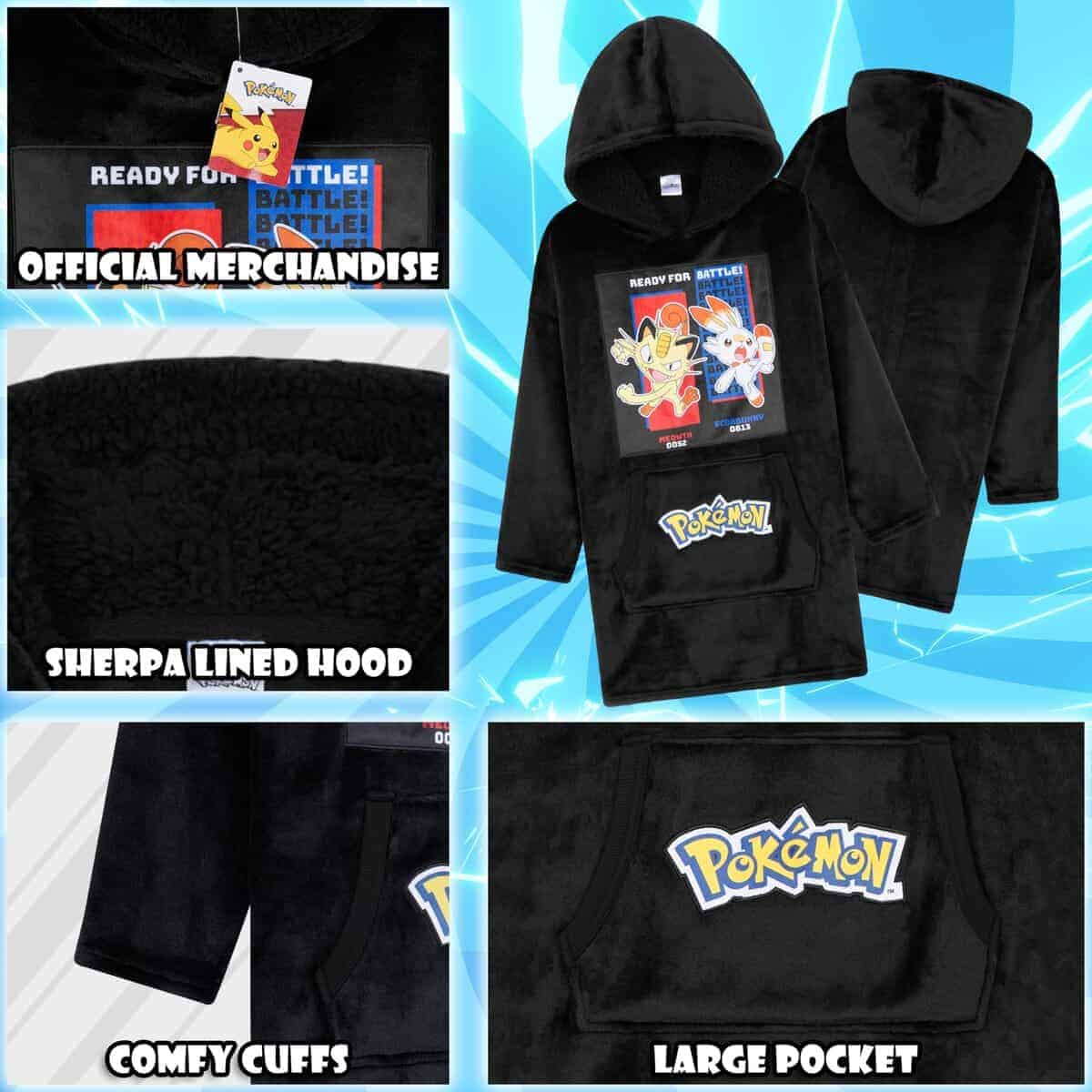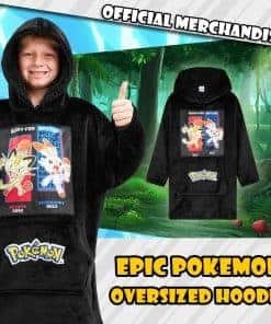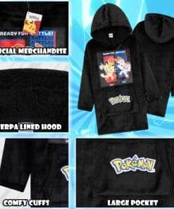 Mejora la comodidad de tu hijo con la manta con capucha Pokemon para niños. Hecha de fleece ultra suave, estas mantas de Pokemon para niños cuentan con una capucha forrada de sherpa para mayor calidez y un amplio bolsillo canguro para mantener las manos calientes. Su diseño oversized también sirve como una manta usable para niños, proporcionando una comodidad excepcional para descansar o relajarse.