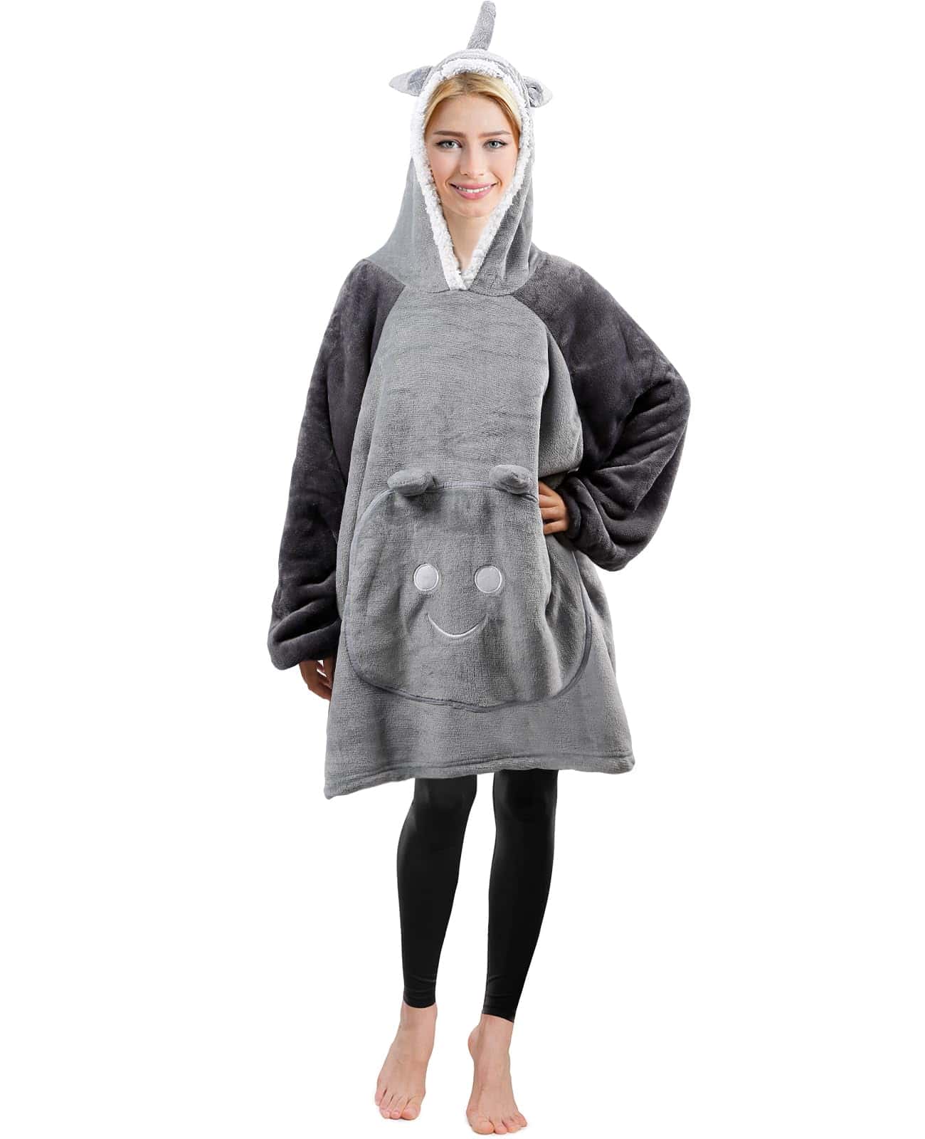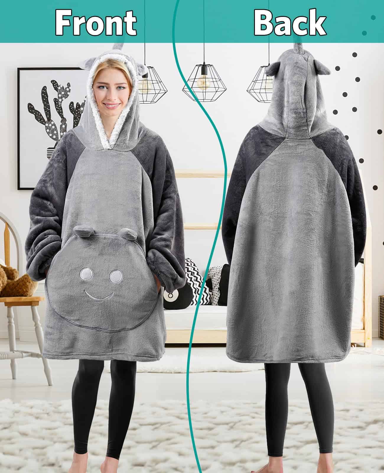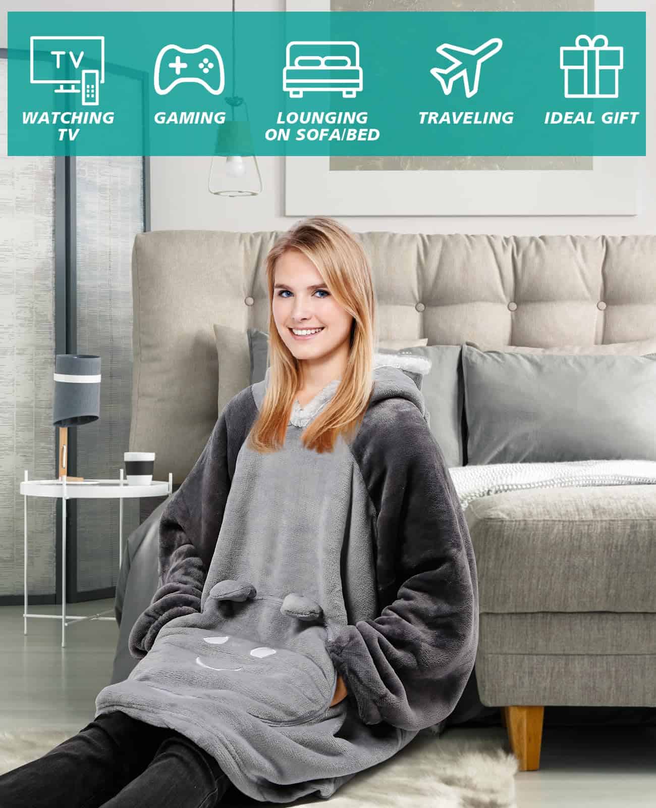 2. Diseño único – A diferencia de las mantas o sudaderas regulares, la manta con capucha cómoda ofrece un diseño único. Te permite moverte libremente y usar tus manos sin que la manta se resbale o arrastre por el suelo. Este diseño asegura que te mantengas caliente en cualquier momento y lugar.