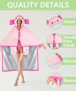 Manta con capucha portátil de Axolote para -Rosa claro