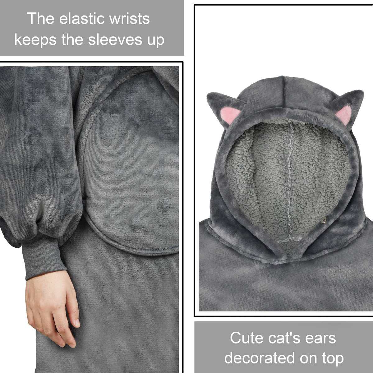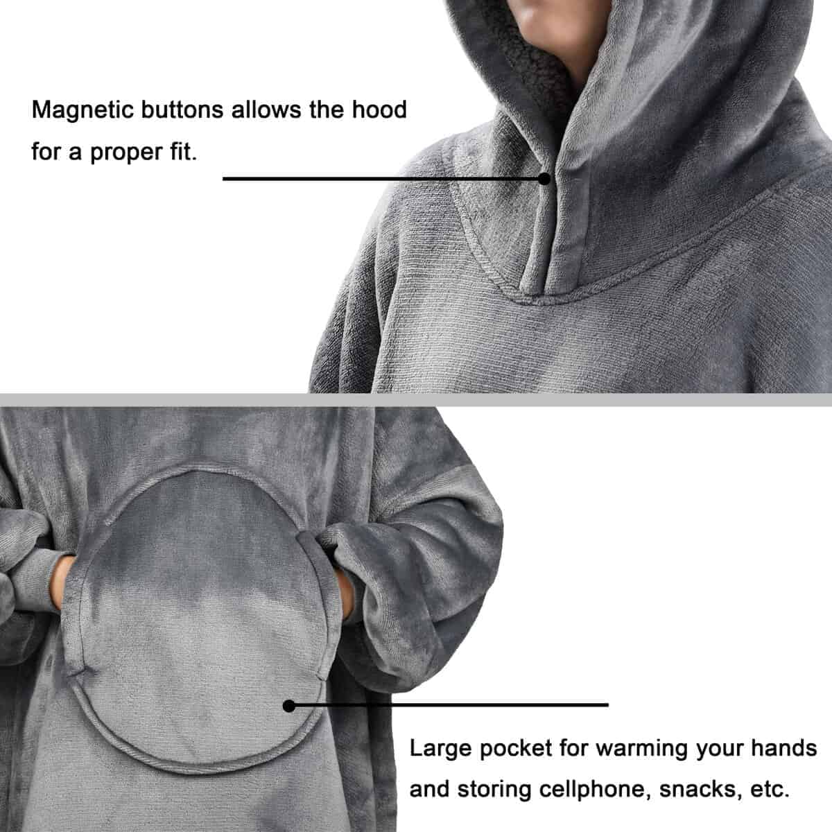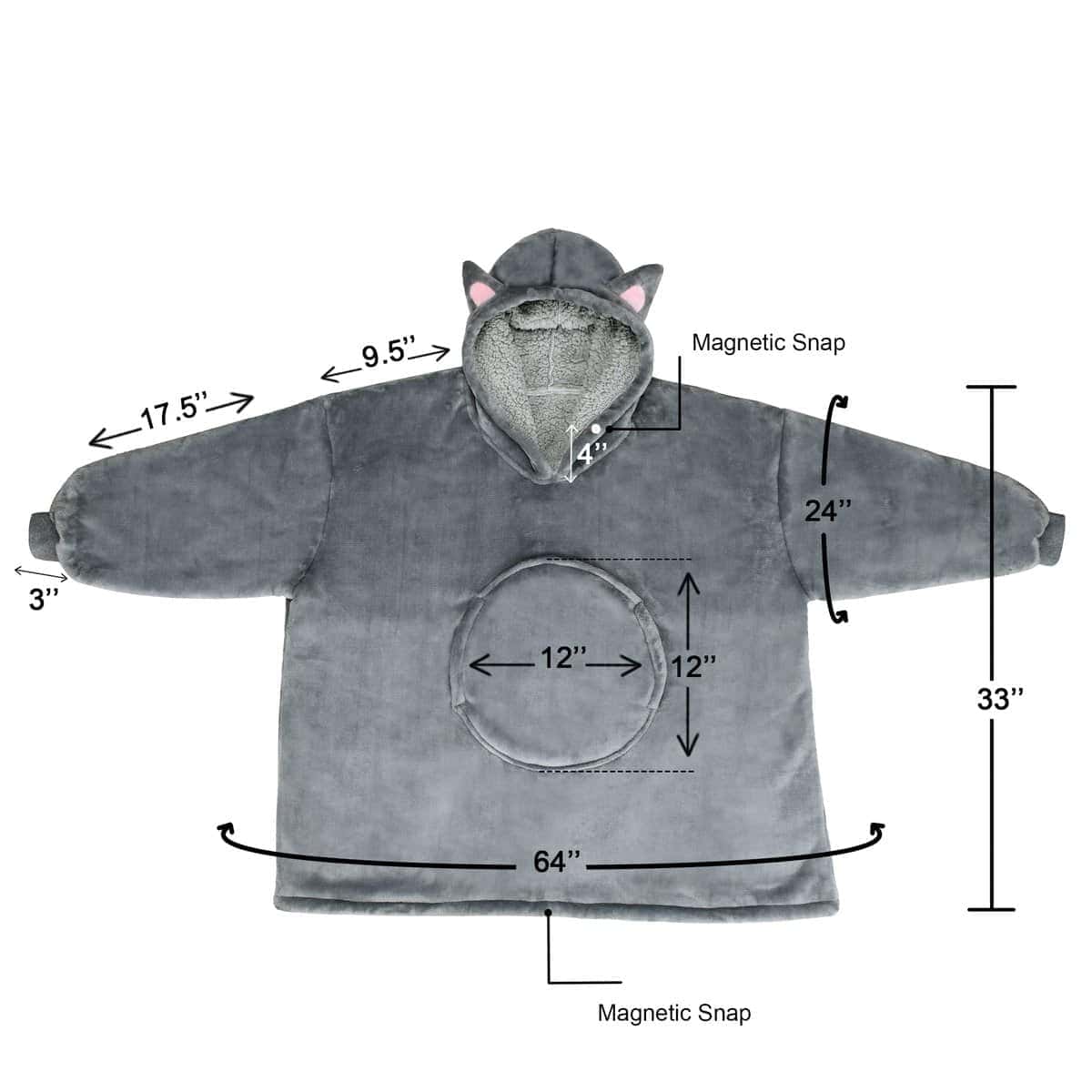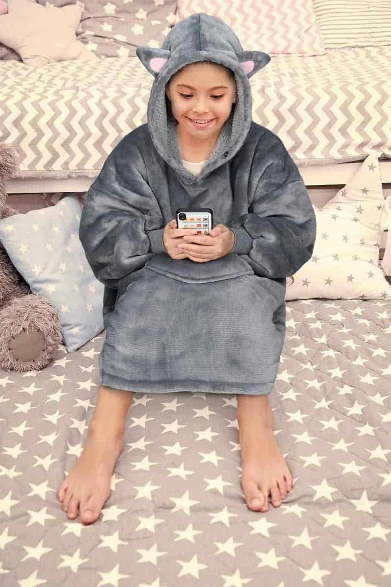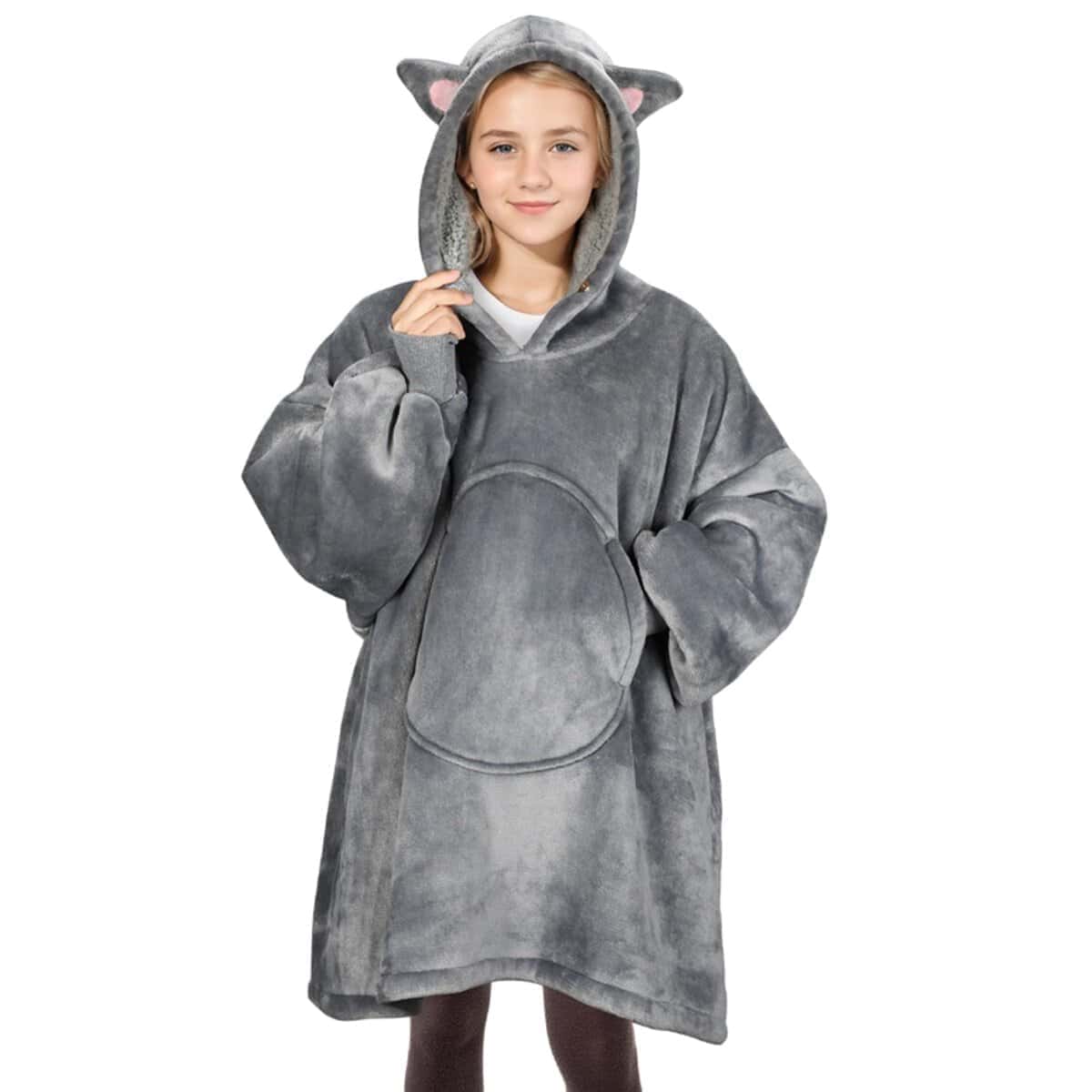 1. Todos los niños lo aman – Esta linda sudadera manta decorada con orejas de animal en la parte superior es espaciosa, los niños pueden meter sus brazos y piernas en el suave y esponjoso forro Sherpa mientras miran la televisión, juegan videojuegos, asisten a eventos deportivos, acampar, leer u otras actividades al aire libre.